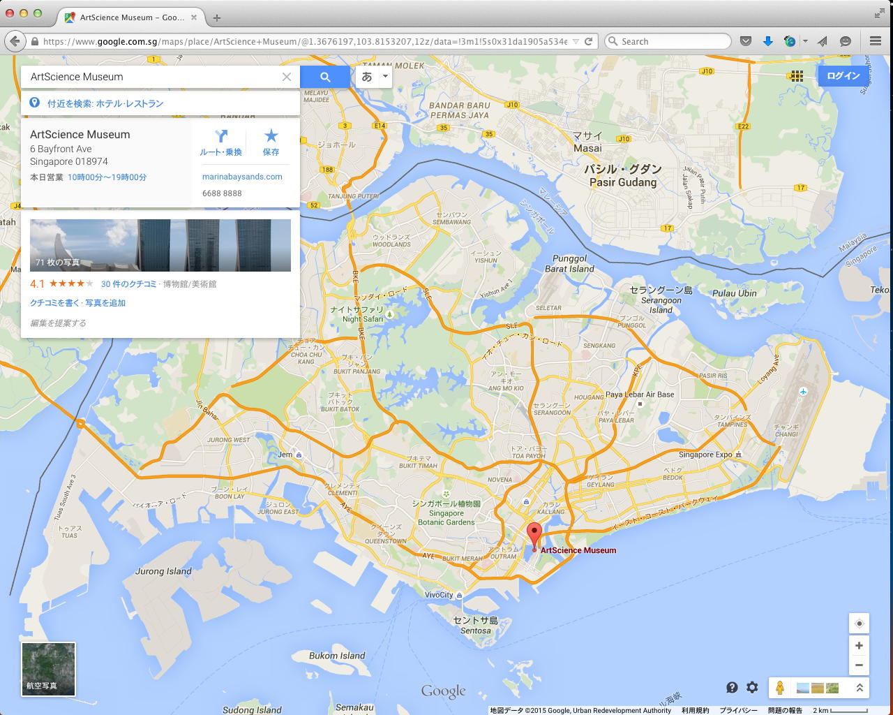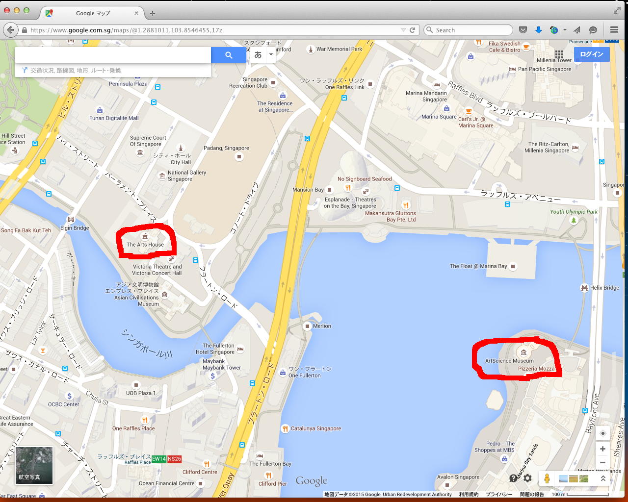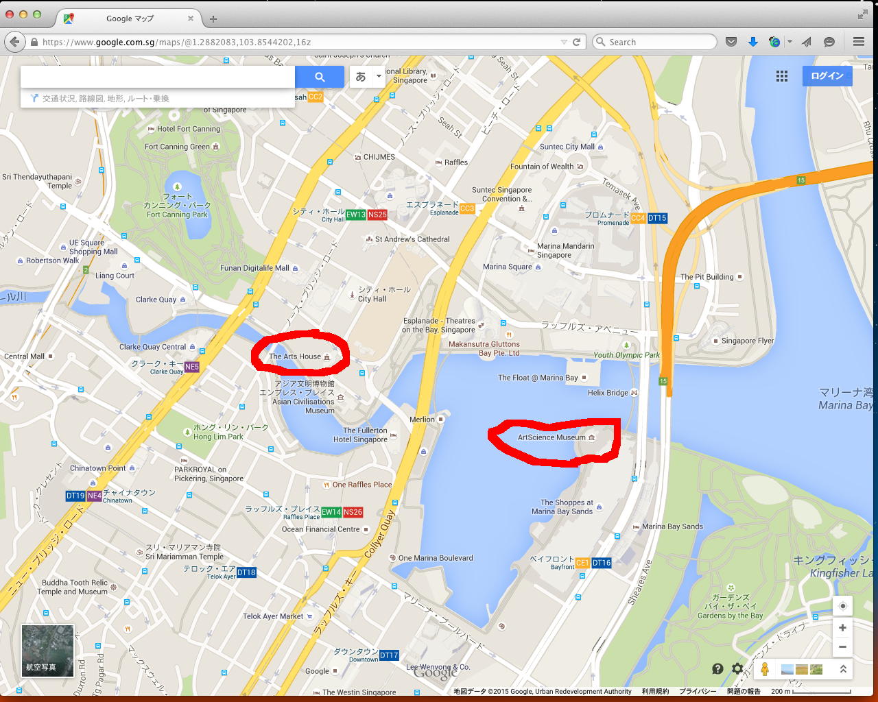 そして SI15 Practical information の「Venues」によると、会場のうち、ArtScience Museumとthe Arts Houseは、上のように市街の中心downtown Singapore (where the Arts House and ArtScience Museum are both located)にあって、便利そうである。 SI15 Practical information の「Accommodation」によれば、Registrationのページが開設されると(本当は昨日の予定だがまだ出来ていない)、そこにリーズナブルなホテルの予約リンクもあるらしい。 まぁ、 ICMC2003 の時には、自分で街中のかなり安い庶民的なホテル(現地人しか泊まっていない)を取ったこともあり、なんとでもなるだろう。 あまり気取ったホテルよりも、前回のようにアジアンテイストの安宿がいいなぁ。