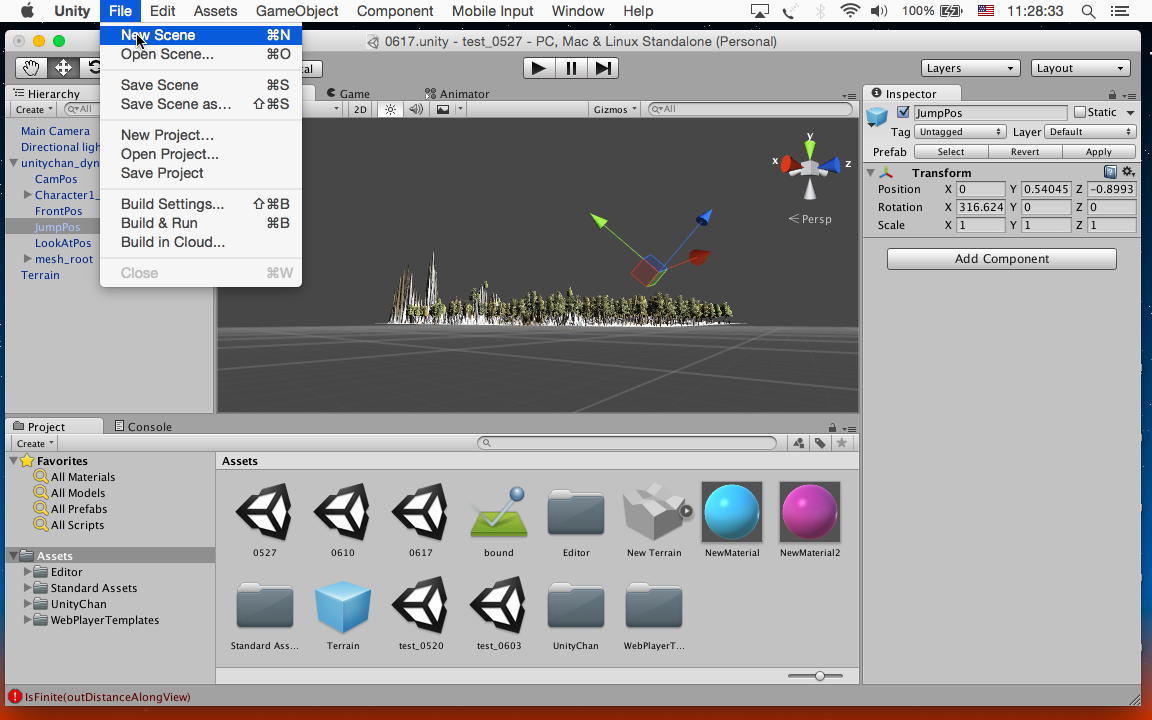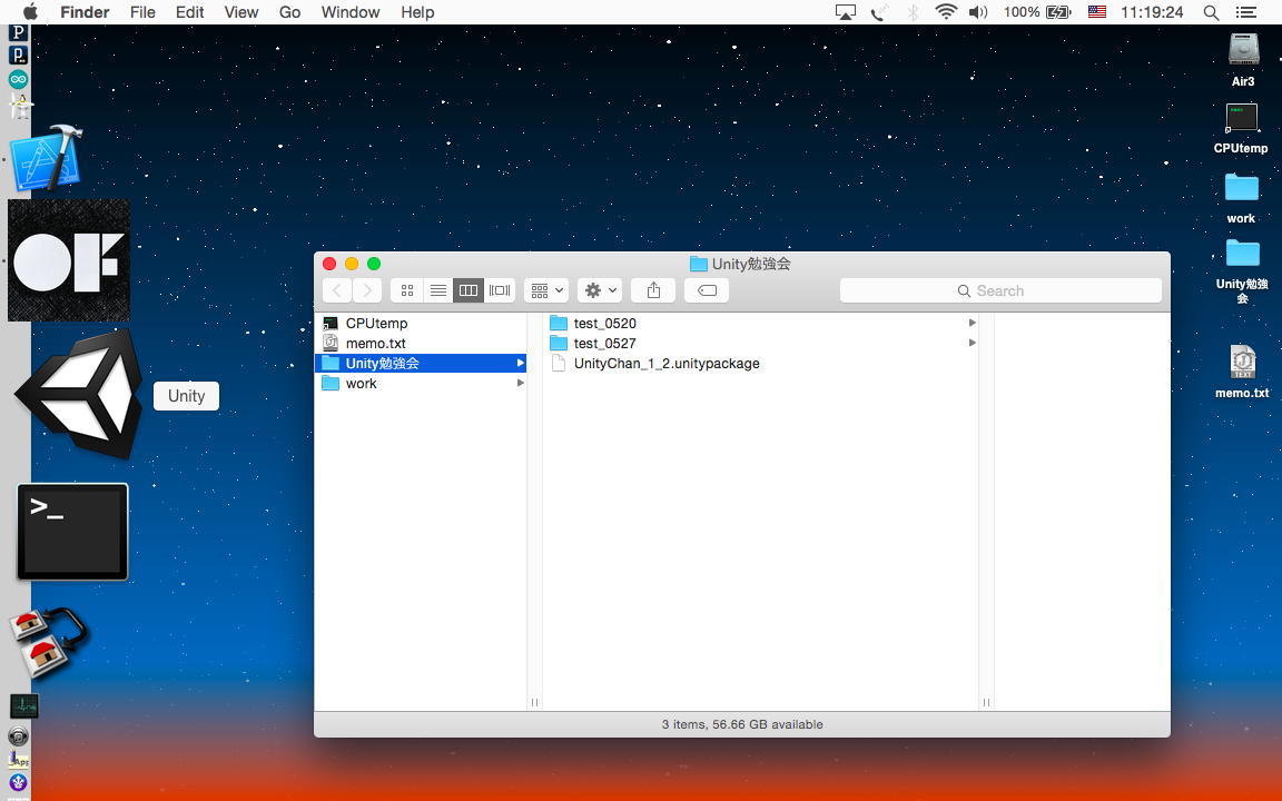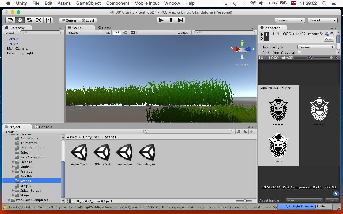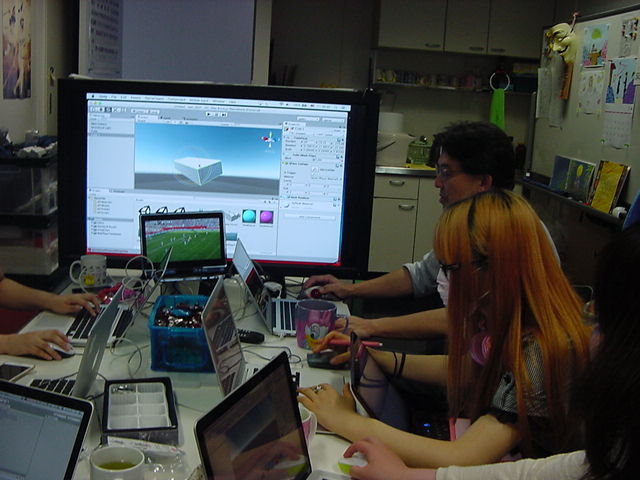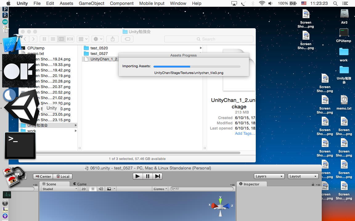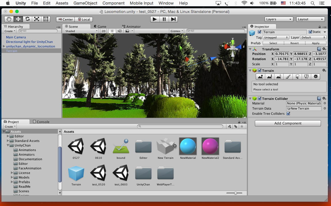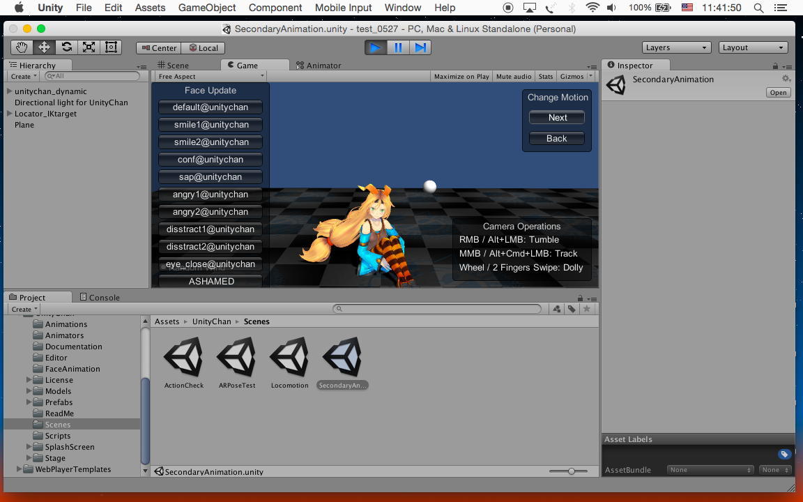 そして1限の「音楽情報科学」では、チーム「うみうし」のために、新たに加速度センサを製作する、と約束した。 続いて2限はゼミである。 上のように、またまた藤石さんを講師としてUnity講座の続きがあり、今日はこれまでに作ったシーンの中で「Unityちゃん」が跳んだり走ったりする、というのをやった。 Unityちゃんの動きの可愛い様子はスクリーン動画の方がよく判るが、 これ と これ と これ と これ と これ である。