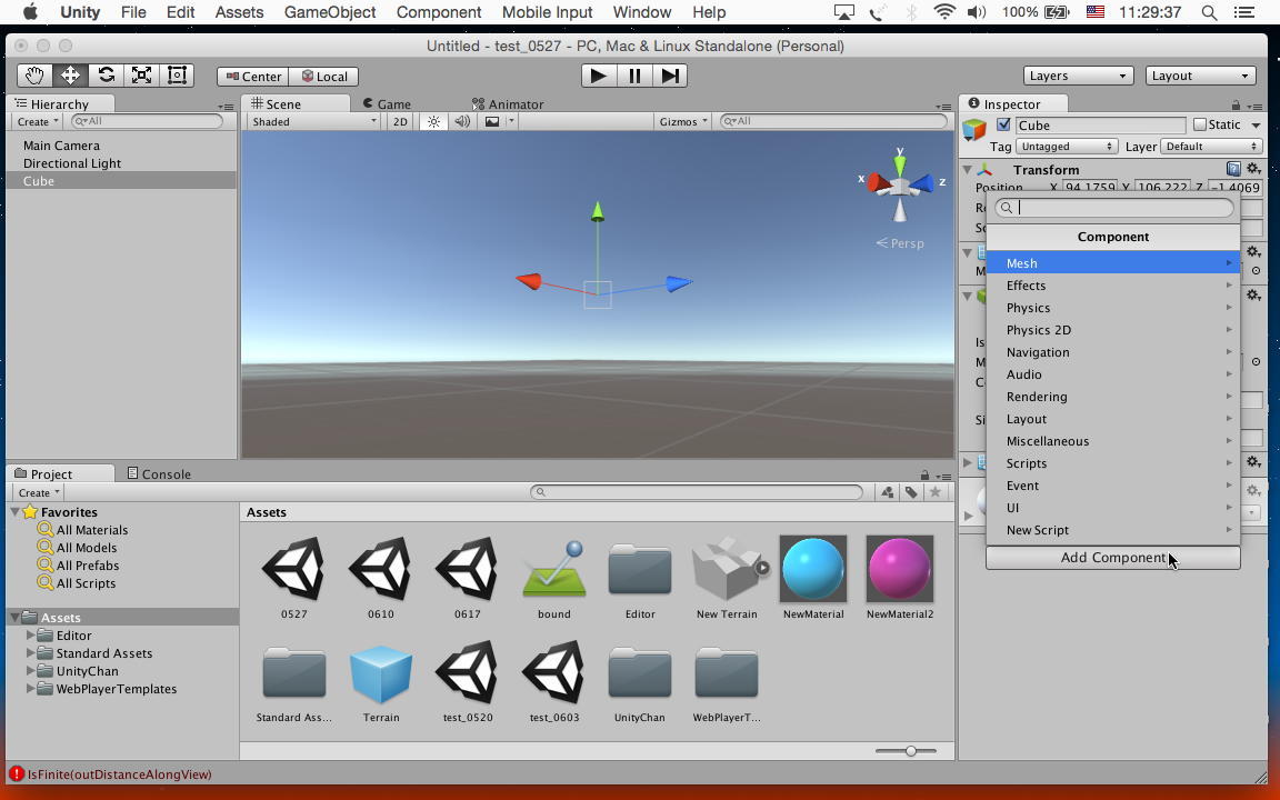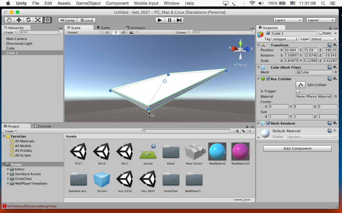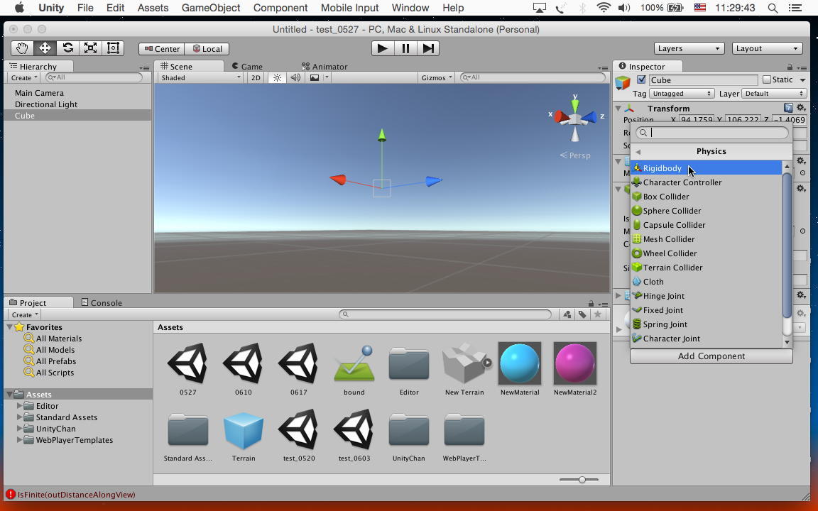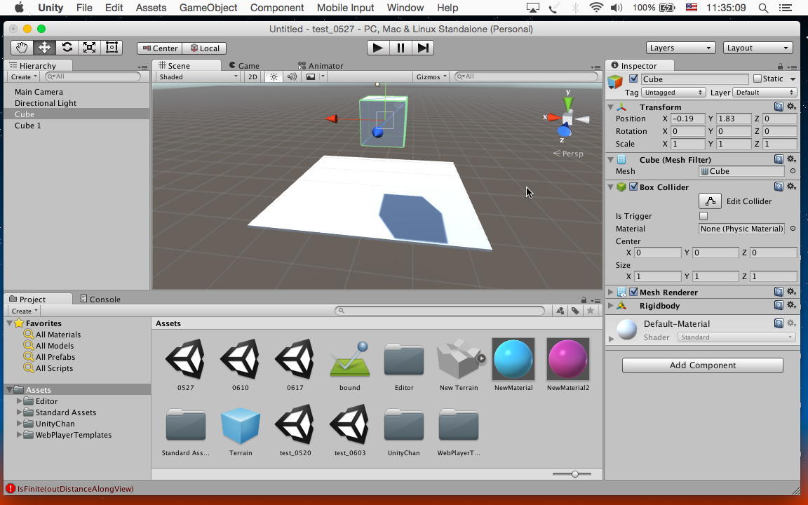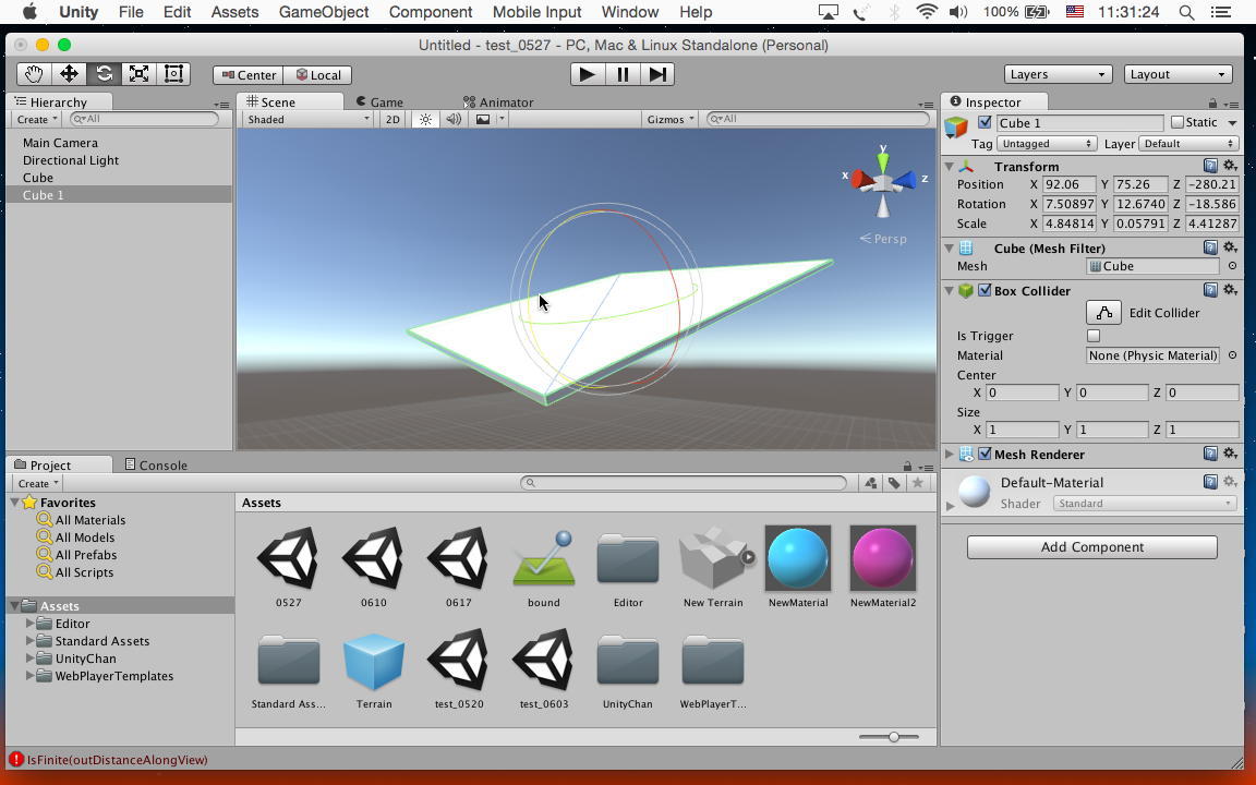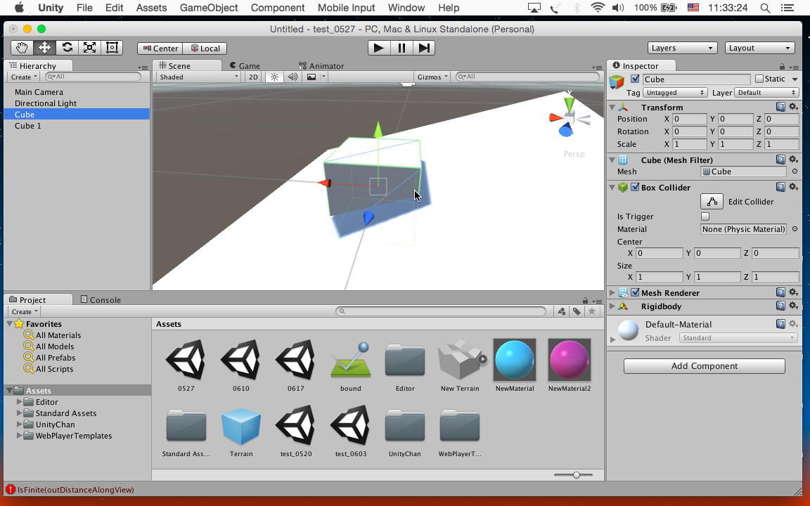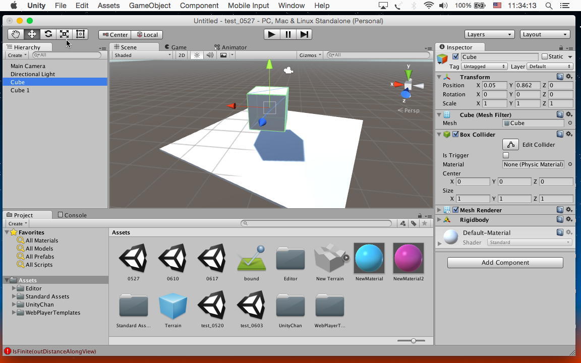 そして1限の「音楽情報科学」では、チーム「うみうし」のために、新たに加速度センサを製作する、と約束した。 続いて2限はゼミである。 上のように、またまた藤石さんを講師としてUnity講座の続きがあり、今日はこれまでに作ったシーンの中で「Unityちゃん」が跳んだり走ったりする、というのをやった。 Unityちゃんの動きの可愛い様子はスクリーン動画の方がよく判るが、 これ と これ と これ と これ と これ である。