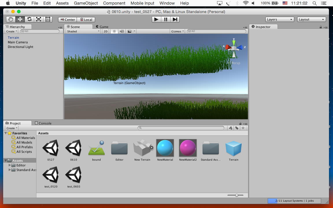 そして、いよいよ第8章も最後のサンプルとなった。 以下の「07-GeometryFurryCarpet」は、何か別の「webgl-noise」というランダマイズのライブラリまで使っていて、zipが付いていたのを解凍してディレクトリごとbinディレクトリの下にdataディレクトリと横並びで置いたところ、無事にビルドで来た。