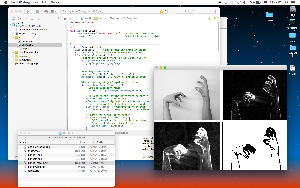 「09-OpenCV」の章の次のトピックは「02-ImageFiltering」である。 とにかく思い出しを、と このように やってみると、いつもに比べて異常に時間がかかってドキッとしたが、そういえば昨夜、Mac OSXのアップデートと、さらにXcodeのアップデートもしていた事を思い出した。 いずれも1GBを超える大量のダウンロードとともに、上の写真のように再起動にも時間がかかっていたので、システムにあちこちが改訂され、そしてXcodeの環境も変わって、改めて全てをコンパイルしたのだ、と納得できた。 とりあえず、これまでの「おまじない」で無事にコンパイルできたので、このままopenFrameworksの勉強は続けられそうだ。