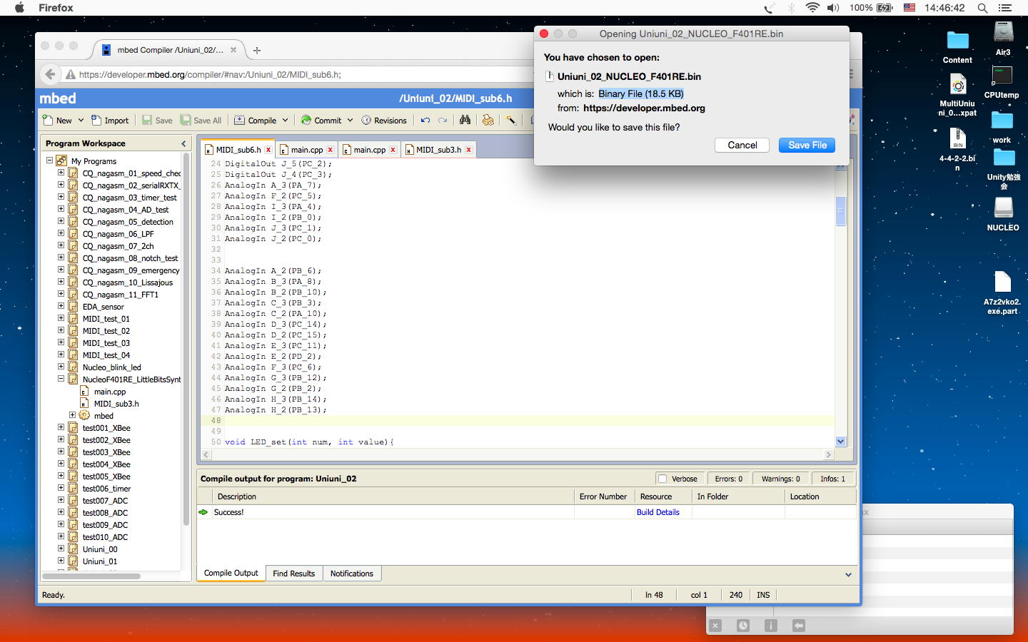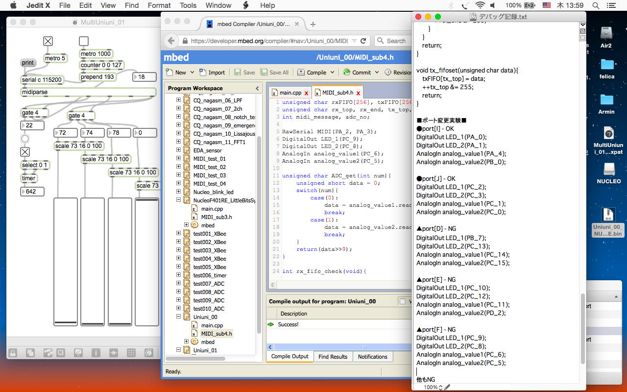- MIDI機能を拡張するためには、ファームウェアをNucleoF401REプログラム「MIDI_test_03」から改訂すればよい