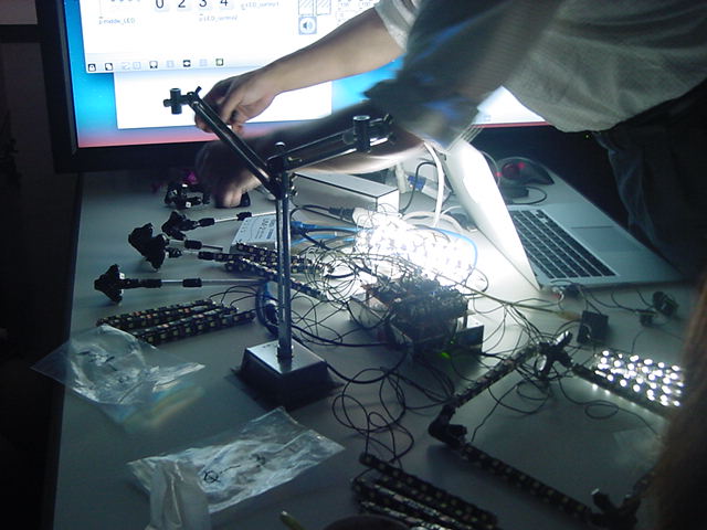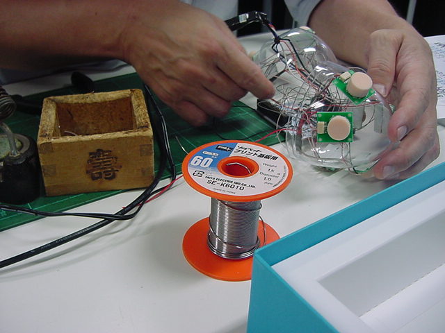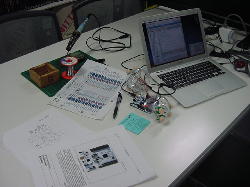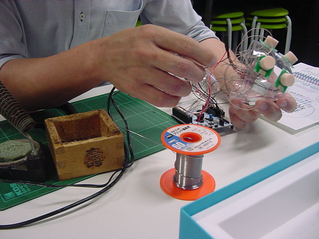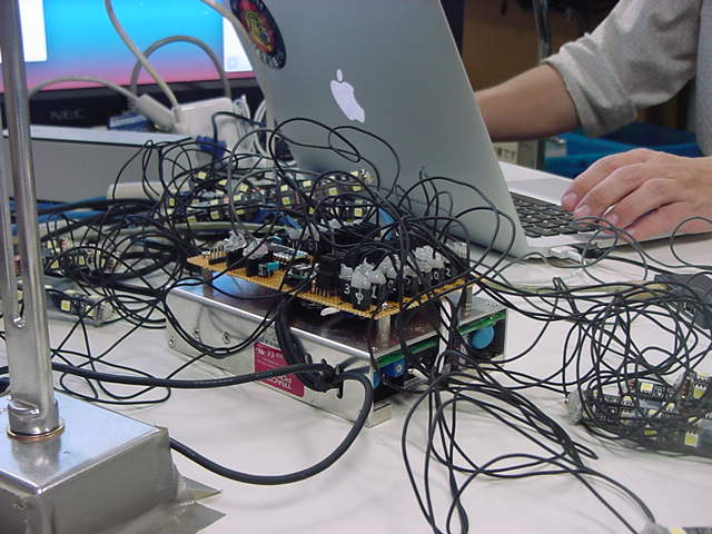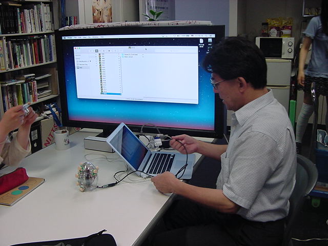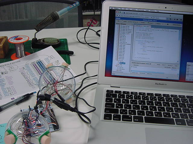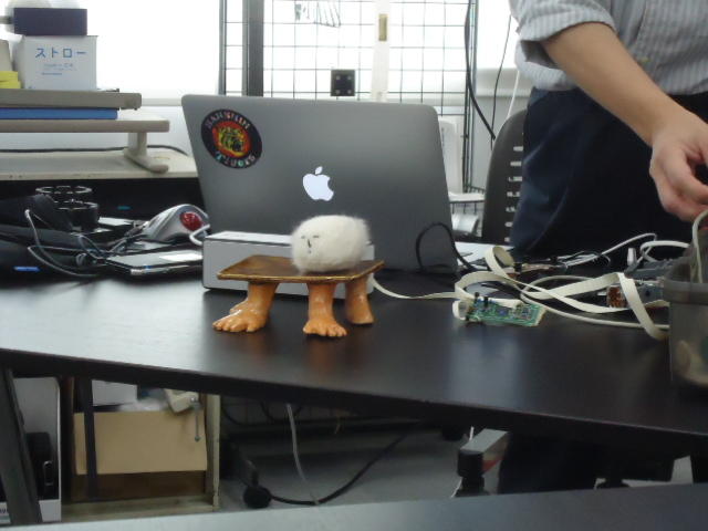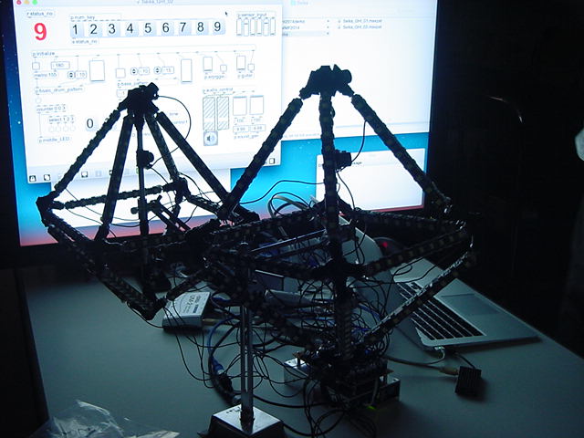 5限には、オープンキャンパスの領域3(ビジュアル・サウンド領域)のミーティングがあったが、研究室に戻ると、以心伝心と言うべきか、 2nd International Symposium on Sound and Interactivity の、日曜日の僕のデモを担当する委員長からのメイルが届いていて、必要な機材とかテーブルとかのリクエストをメイルした。 「They sound very exciting with names like "GHI2014", "LittleBits"...we can't wait!」などと書いてきてくれたので、ついでに、「先週作った、この新しい楽器もお披露目するかも」と、うにうにについてチラッと知らせておいた。 ウケれば何よりである。(^_^;)