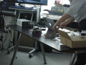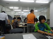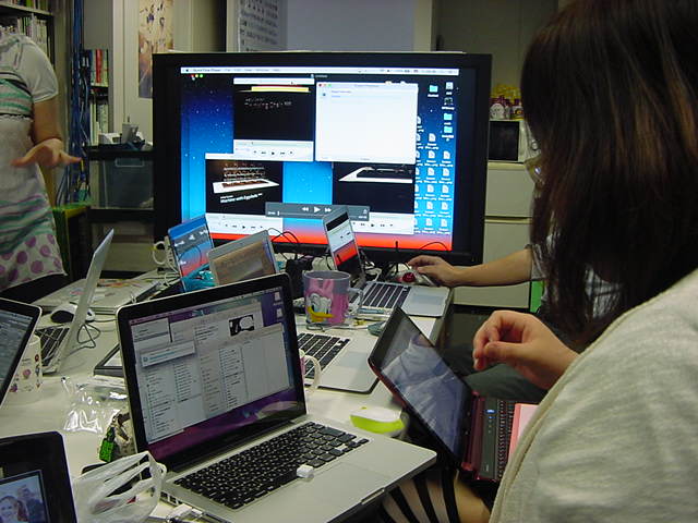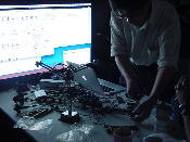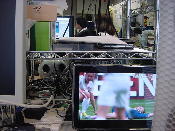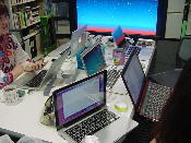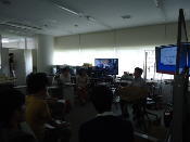 昨日の7月6日は、朝7時に筑波のホテルを出発して、2時間ほど渋滞している首都高速を通過中になでしこJAPANの敗退を確認して、茨城→千葉→埼玉→東京→神奈川→静岡、とずっと雨/豪雨の常磐道→首都高→東名高速を計6時間以上かかってSUACに帰着した。 公用車を事務局に返して荷物を研究室に台車で運んで復命書を提出したところで4限になり、「サウンドデザイン」を短めに終えて、研究室に戻ってウトウトしたら一日が終った。 そして昨夜の9時間睡眠で一応回復して、今日もいつものように朝6時過ぎから研究室である。 今回は出張中にこの日記をWebに上げていたが、YouTubeのパスワードが判らず動画だけ上げていなかったので、過去の日記の部分を修正するのでなく、ここにまとめて「補遺」として、動画素材と、あと東京ビッグサイトで活躍した藤石さんからもらった写真などを置くことにしよう。