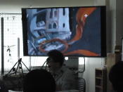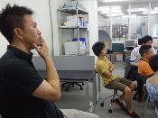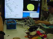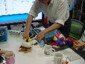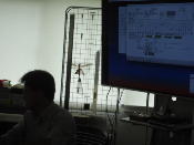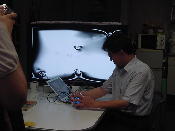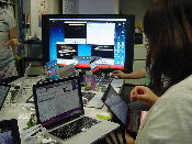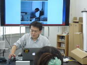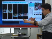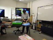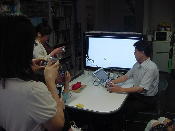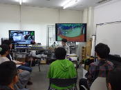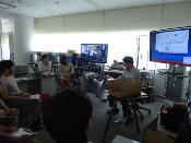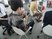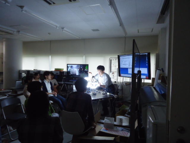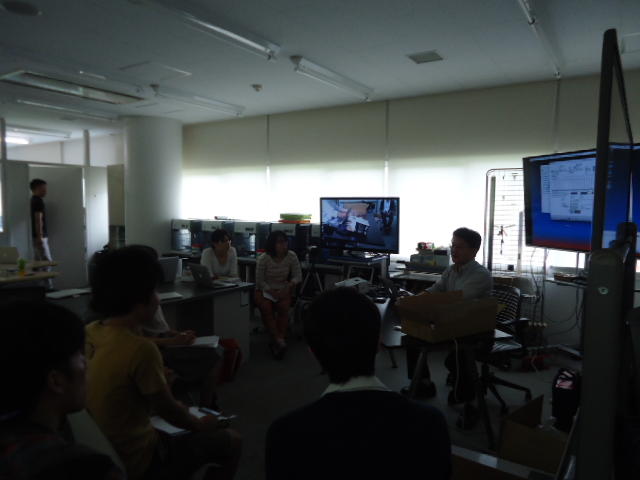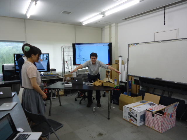 そして学生たちはこの晩、バイオフィードバック学会が仕立てたバスで東京・銀座に行き、モーションキャプチャのスタジオでのデモ(居合いの達人の動きをキャプチャ)、懇親会に参加して、再び筑波に帰ってきた。 藤石さんからもらったその時の写真と動画がこれである。→ ★ ★ ★ ★ ★ ★ ★ 動画 動画そしていよいよ、筑波での4日目、 2015年7月5日(日) である。 以下の3本の動画は、甲南女子大の辻本先生に見てもらうために、学生に撮ってもらった僕の発表の様子(2カメラ)と、産総研の見学会での「映像酔い」の素材映像である。