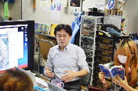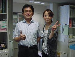 昨日は午前に、卒業生の山中さん(下)が1106にやってきた。 同期の金子冴子さん( Myo日記 の「2015年3月16日(月)」のところに詳しく載っている)が結婚するということで、結婚式の余興に「恩師のメッセージ」というのを作りたい、という依頼である。