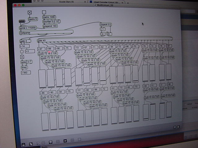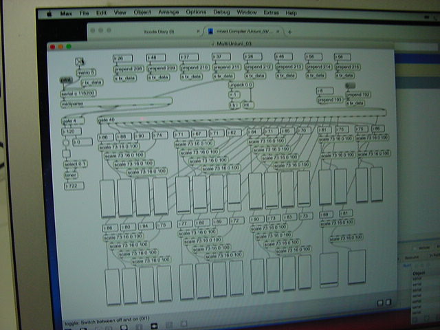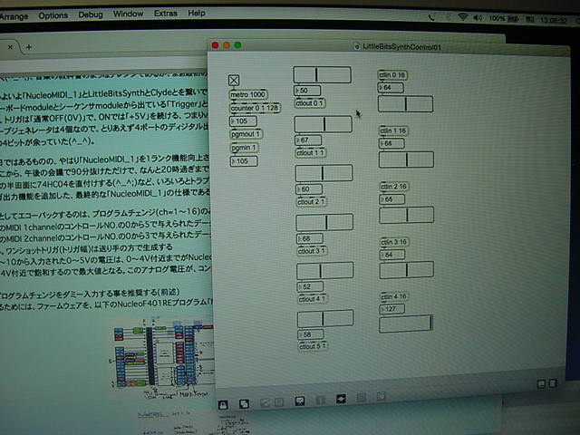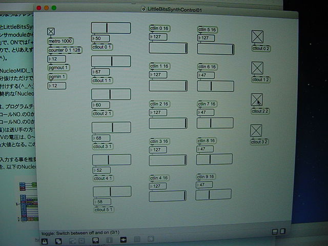こうなると、どこかで時間を作って、あと6本のケーブルを作ってしまいたいが、アリゾナに行くまでにその余裕があるかどうか、悩ましいところだ。 とりあえず上のように、馬鹿正直なLittleBitsSynthController用のMaxパッチが出来たので、「作曲」とまで言わなくても、とりあえず音を出すまでやってみたいが、これはハマると途方も無く時間を取られる(超楽しい)のが確実である。 明日のゼミでやれるといいが、どうだろうか。