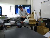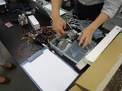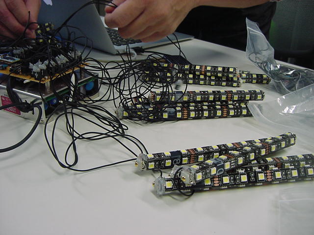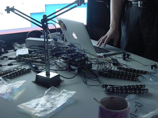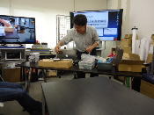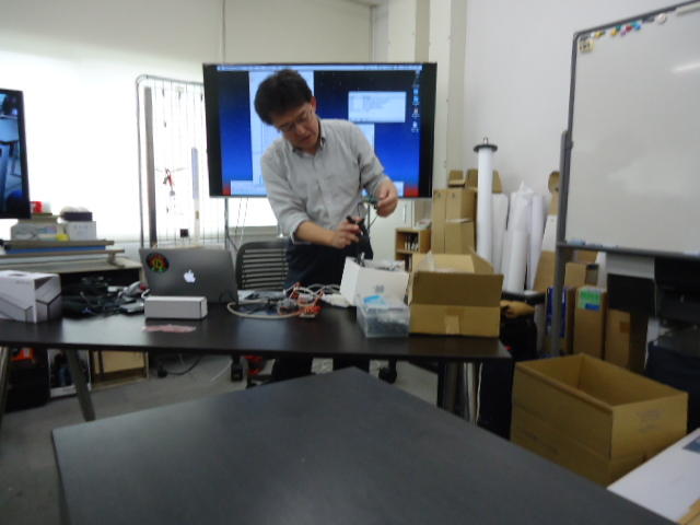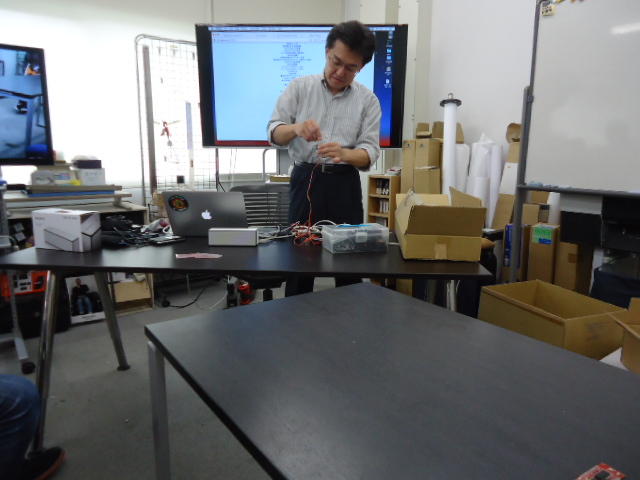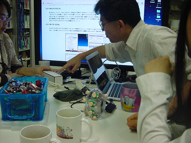 朝7時から このように あれこれ広げて、明後日の早朝から 筑波大ワークショップ に向かう準備を開始した。 せっかくなので、それほど大きくない色々な「ブツ」を持参して、紹介・デモする事にしたのだ。 途中でマルチメディア室に行ってあれこれ持ってきたりして、大きな段ボール3つに収まった頃には10時を過ぎていた。 そこから、まだ名前の無い多重うにうにセンサ楽器のパラメータをいじっていたらお昼になり、午後には「企画立案演習」の合間に医者に行ったり、放課後にアカペラがあったり、で一日が終わり、新楽器の動画は撮れなかった。 1限「音楽情報科学」には持って行かず、明日のゼミでのお披露目かな。(^_^)2015年7月1日(水)