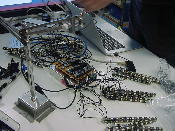 そこで、思い出しを兼ねて、箱からLittleBitsSynthControllerとLittleBitsSynthを出して、この仕様に合わせてMaxパッチを作りながら以下のように動作を確認していった。 その結果、D/A出力の6ポート、トリガ出力の4ポートはいずれもLittleBitsSynthControllerの動作確認と拡張ケーブルまでチェックできたが、A/D入力の10ポートは動作確認できたものの、肝心の拡張ケーブルは5本しか出来ておらず、さらにそのうち1本にショートらしい不具合が見つかった。 つまりA/Dは実質、4ポートしか使えないのだ。(^_^;)