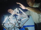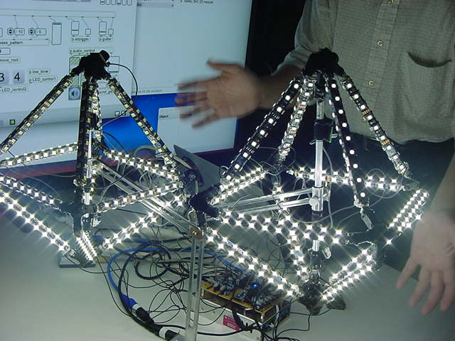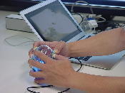 それに代わって、もろ中国語のセミナー案内メイルと、あとは上記のような英語タイトルの海外からのスパムが主流となってきている。 海外からのスパムの傾向として、セクシー系/ドラッグ系に代わって、写真ネタが多いのが最近の特徴だ(この日は夕方まで、30分に1本ぐらいの目立たない間隔でこの手のスパムがずっと到着し続けた)。 そんな英語スパムメイルの中に1本だけ、Denisからのメイルが届いていた。 2010年に僕がロシアでのワークショップの機会に彼等とDiscussionした時に出ていた話題として、「身体動作とサウンド」というテーマがあったが、昨日、その3回目のワークショップを行ったそうで、 このような 記録動画(限定公開なので転載不可)を紹介してくれた。 けっこうよくあるものだが、kinectで検出した身体動作からゴムひもで連結された棒状のオブジェクトにマッピングして音を出すもので、画像認識の遅延をゴムひものメタファーで吸収する(誤摩化す)、というものである。 これは、「音楽情報科学」のkinectグループでも、freenect+jitterで、Maxで作れると思うので、ぜひ挑戦して欲しい。 Densには以下のようにコメントしておいたので、次なる展開を期待しよう。