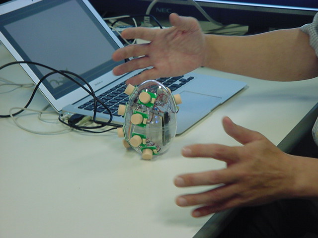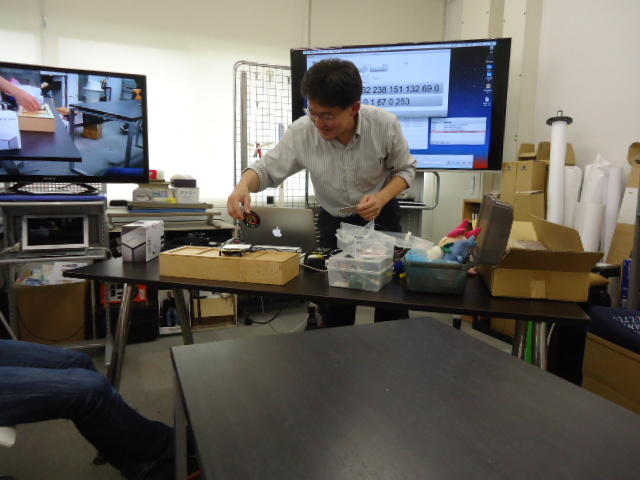 何となく感じる「気配」の正体? 「準静電界」とは - サメやナマズが持つセンサーが人間にも そして1限の「音楽情報科学」では、4回生の2チームの作品がそれっぽくなってきて(記録は来週の合評)、2限のゼミでは後期に向けての議論とともに、学生に頼んでMRTI2015のデモを記録してもらった。 その様子は以下である。