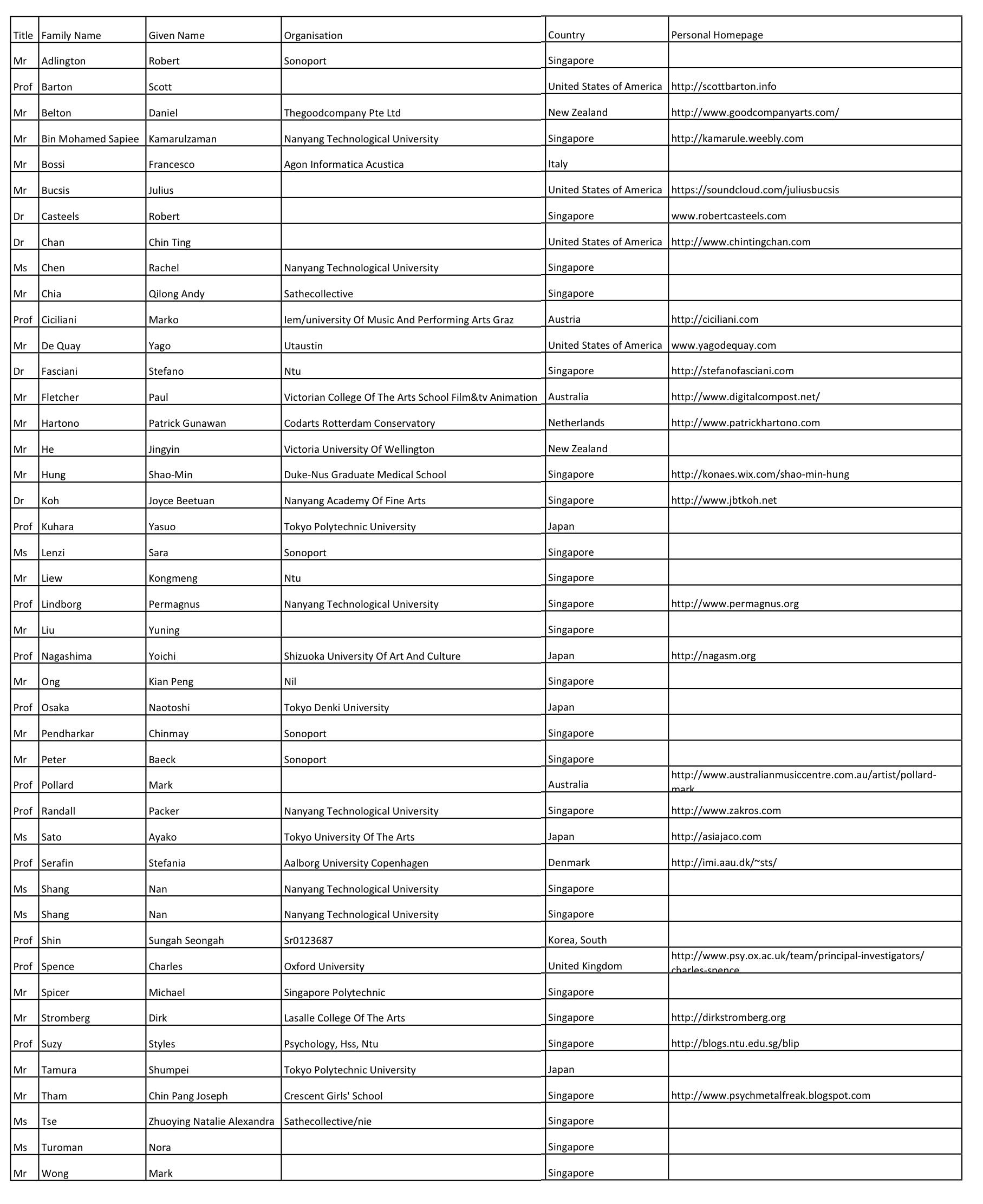 You will receive further information regarding the scheduling of your session, which will take place on either Thursday 20 or Friday 21 August, once the schedule has been finalised.The Committee has taken a keen interest in your assemblages and new instruments for musical expression. In addition to the oral presentation, we would like to invite you to bring one or a few of them (e.g. "GHI2014", "LittleBits"..) and to give a demo at the ArtScience Museum on 23 August. We think that would be a great contribution to the 'Sunday Showcase'. Please contact us if you are interested.