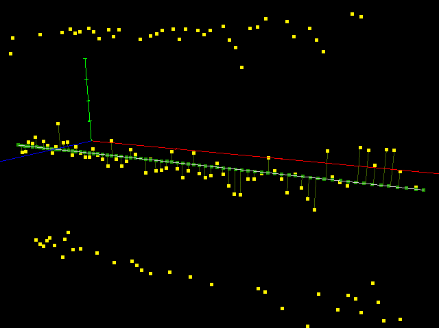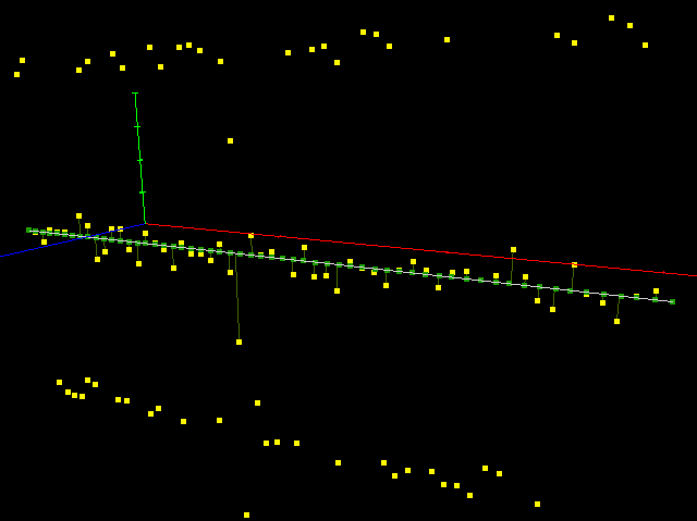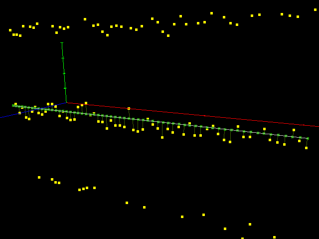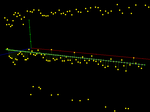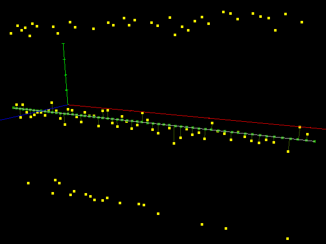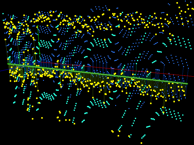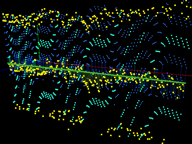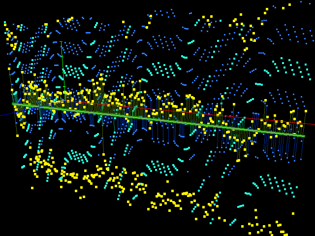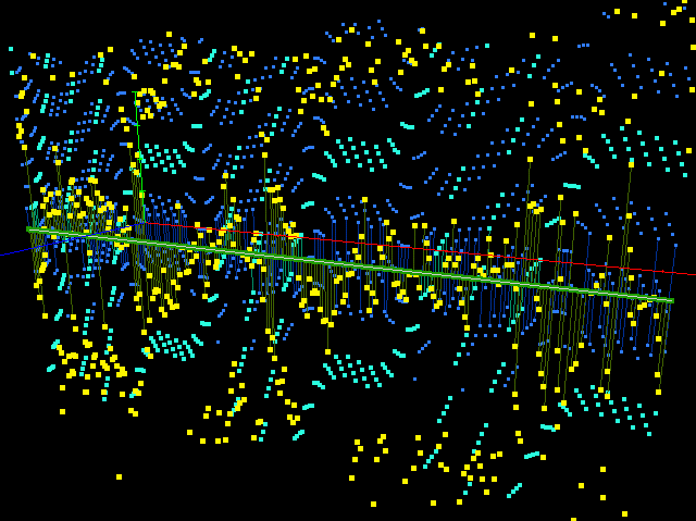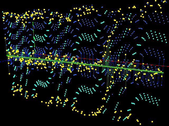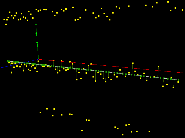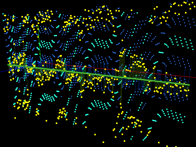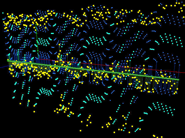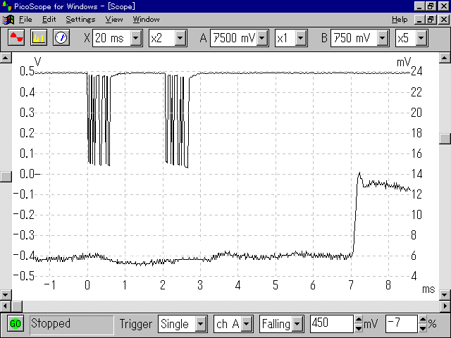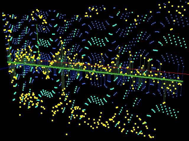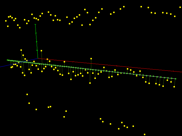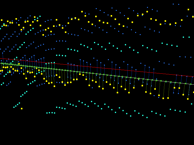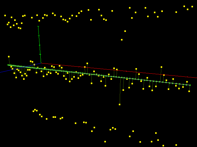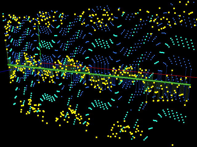 下図はこの全体図のいちばん最初の部分を、データ軸方向(X軸方向)に拡大表示した例である。 実験の冒頭はいきなり映像も音楽も始まるので、、最初のあたりは映像ビートとタッピングデータとがばらばらに離れている。