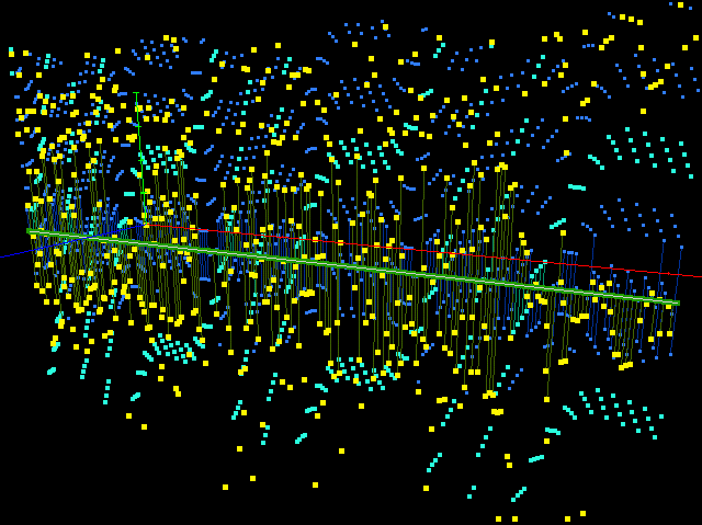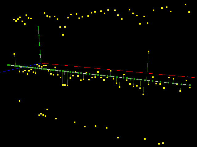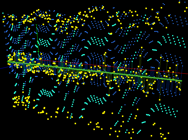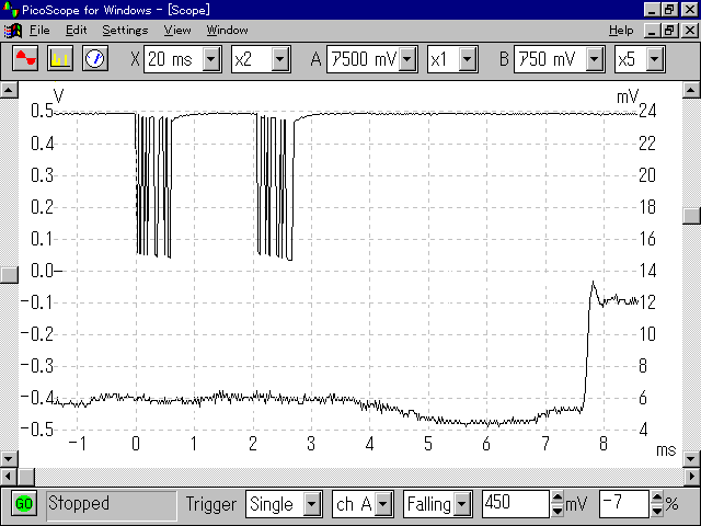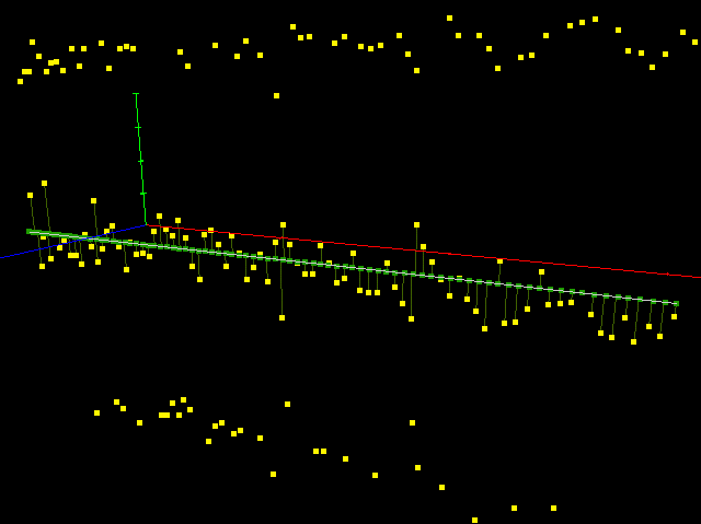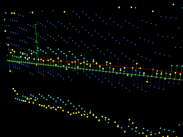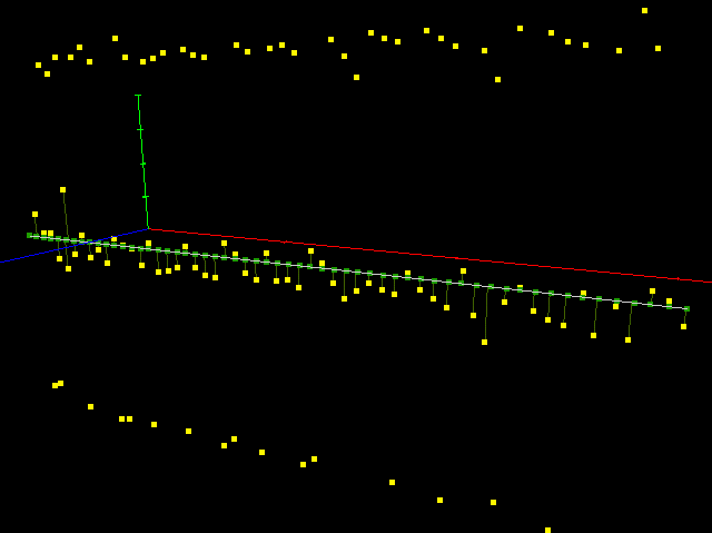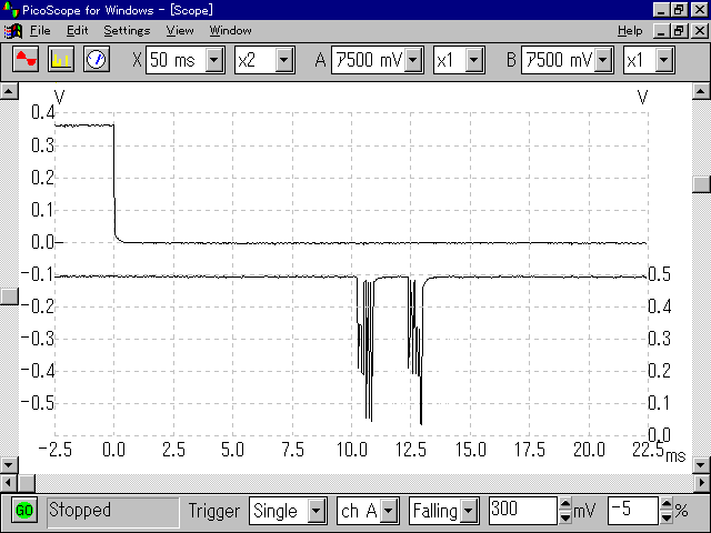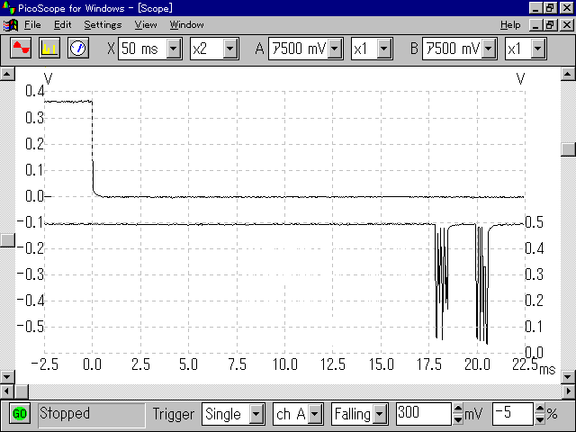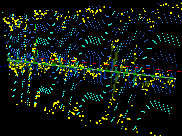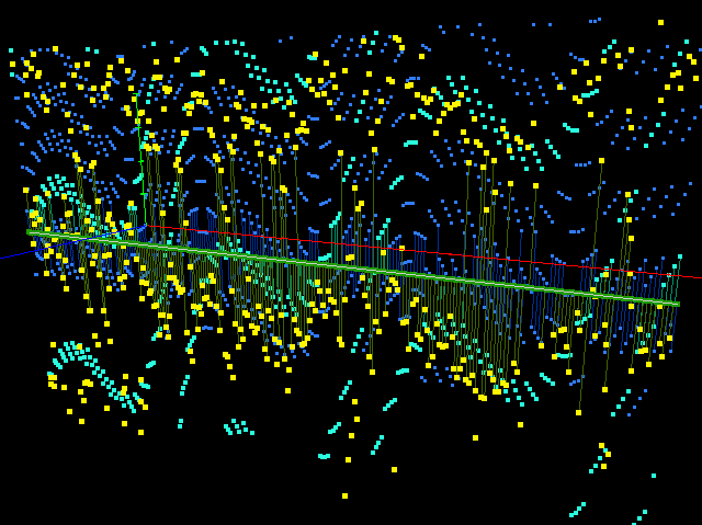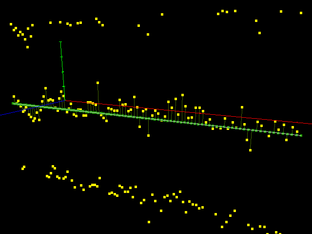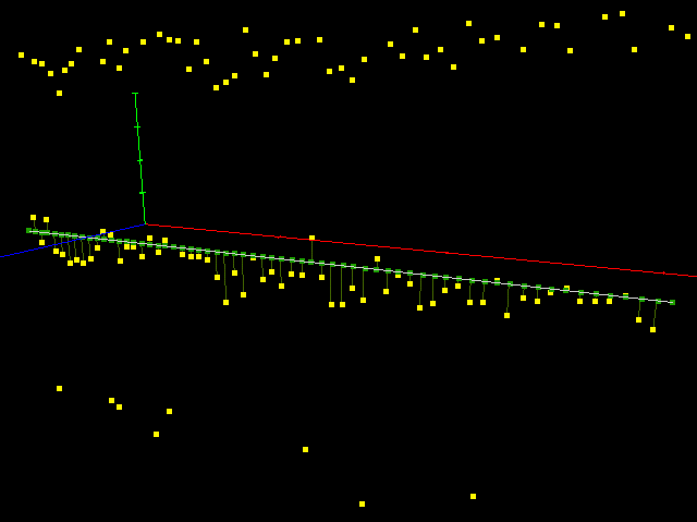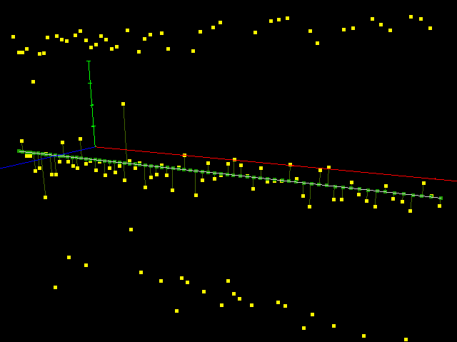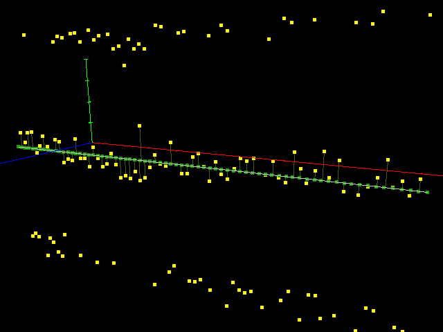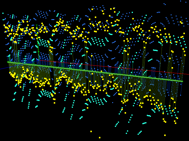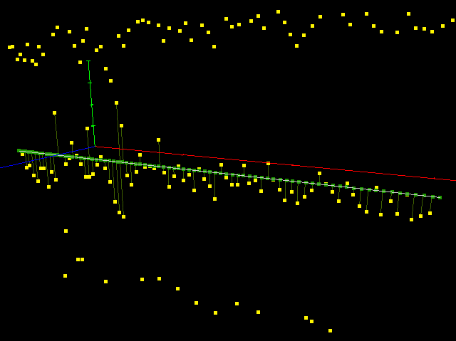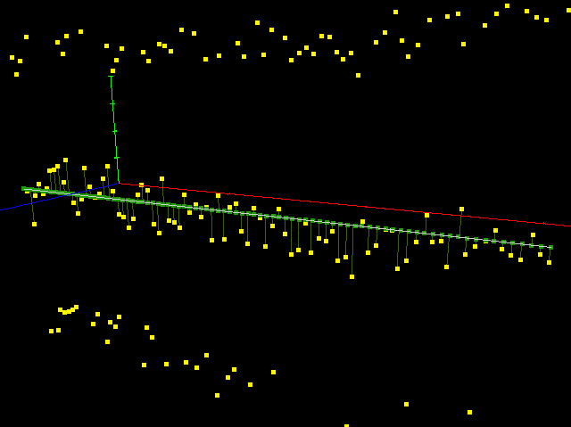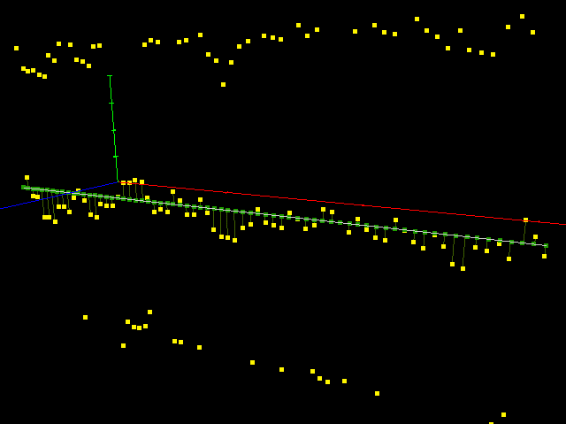下図はこの全体図のいちばん最初の部分を、データ軸方向(X軸方向)に拡大表示した例である。 実験の冒頭はいきなり映像も音楽も始まるので、、最初のあたりは映像ビートとタッピングデータとがばらばらに離れている。