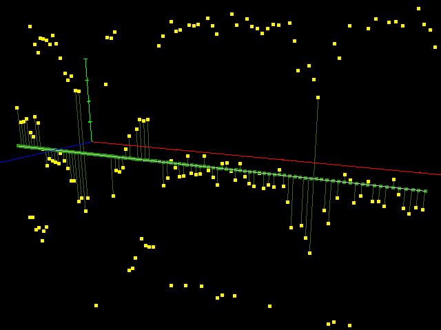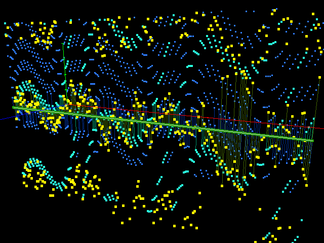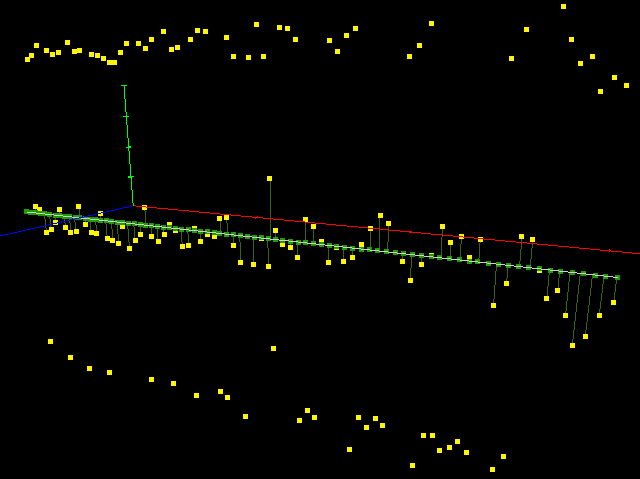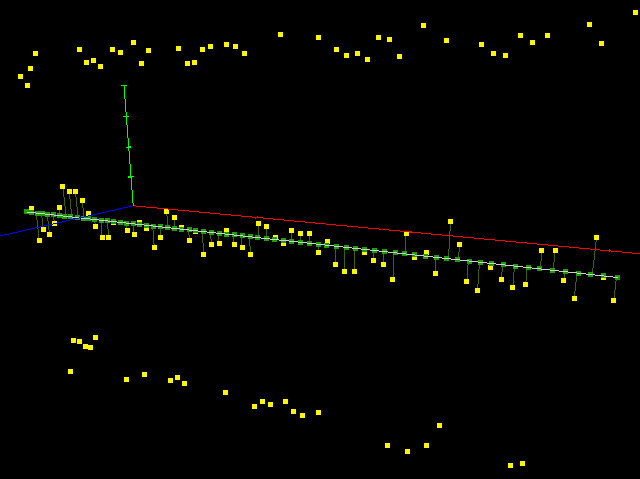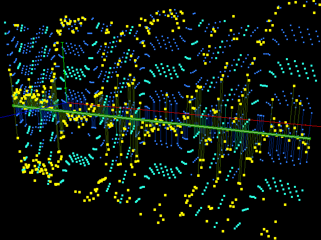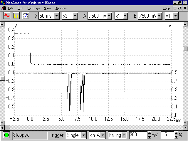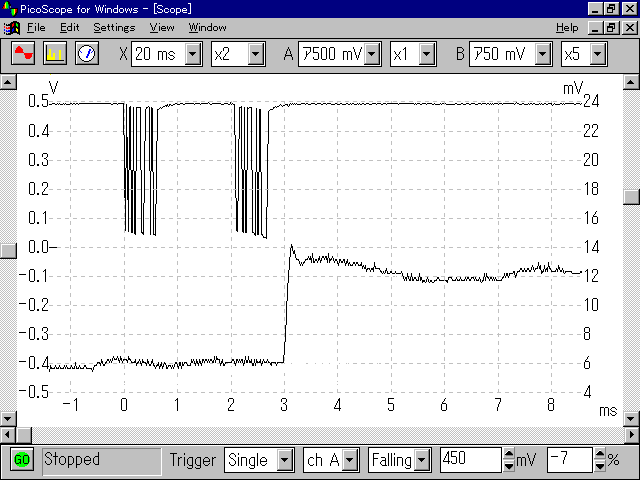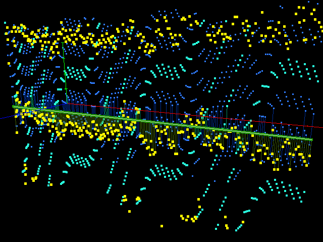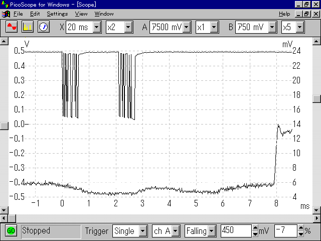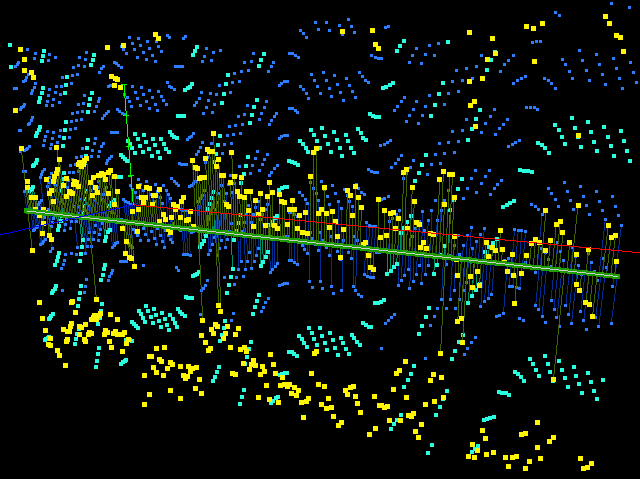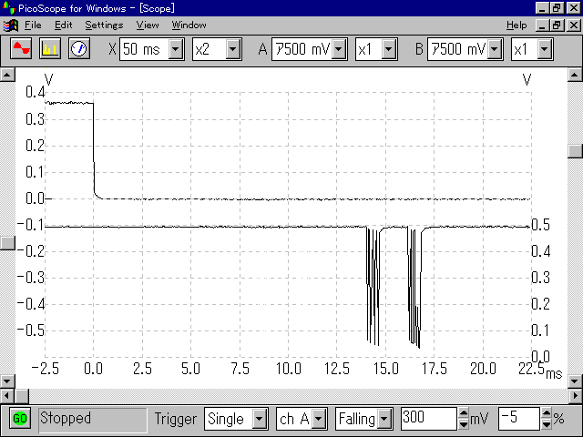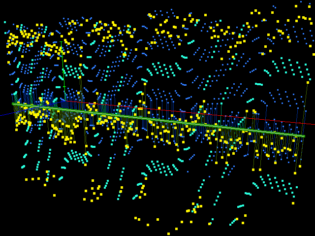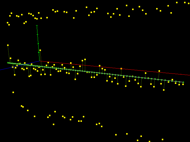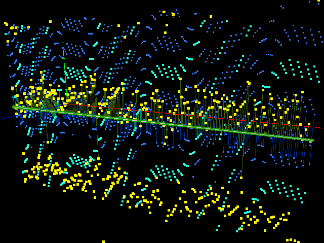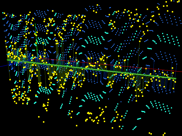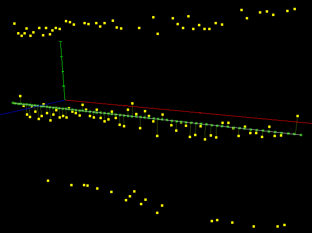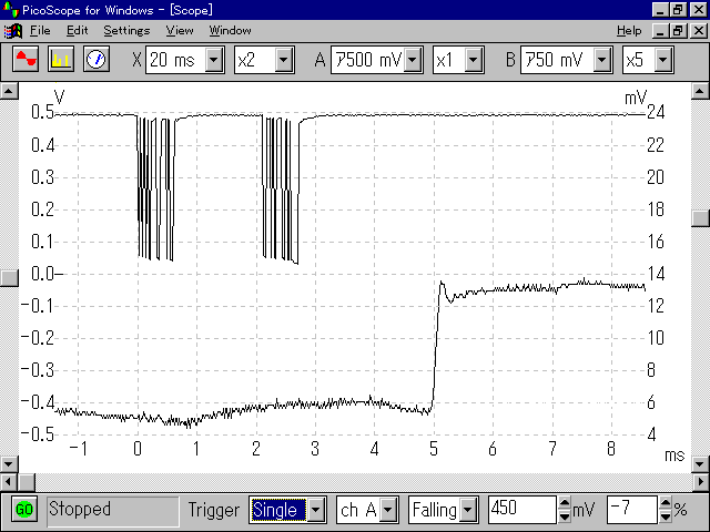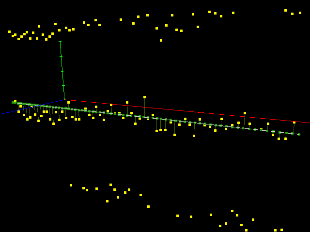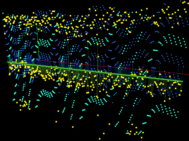 下図はこの全体図のいちばん最初の部分を、データ軸方向(X軸方向)に拡大表示した例である。 実験の冒頭はいきなり映像も音楽も始まるので、、最初のあたりは映像ビートとタッピングデータとがばらばらに離れている。