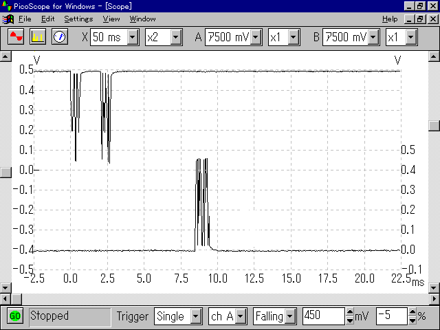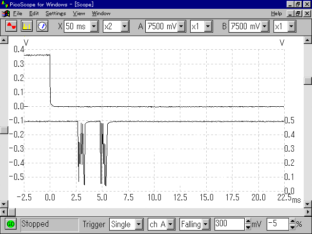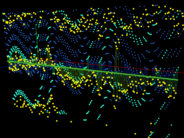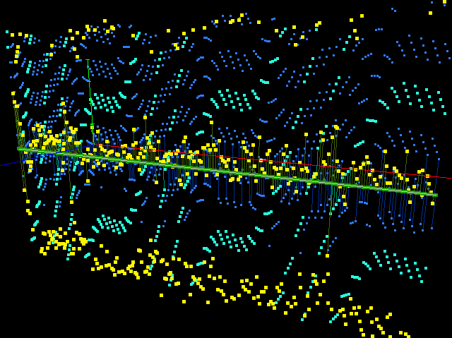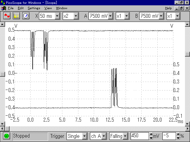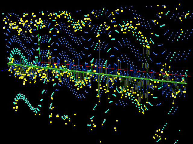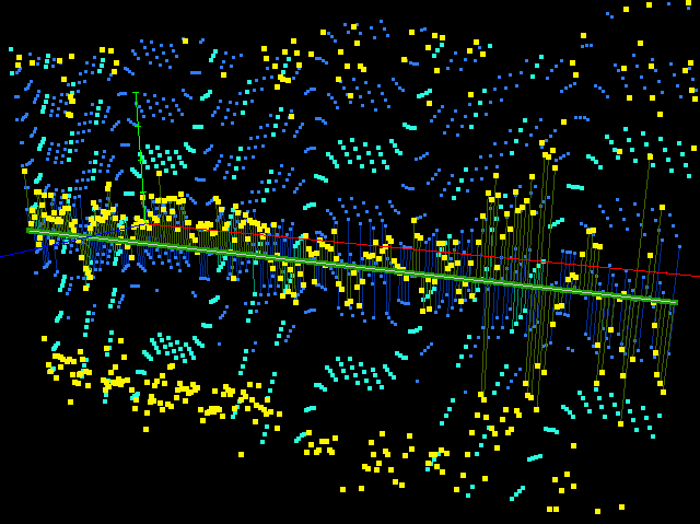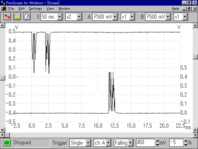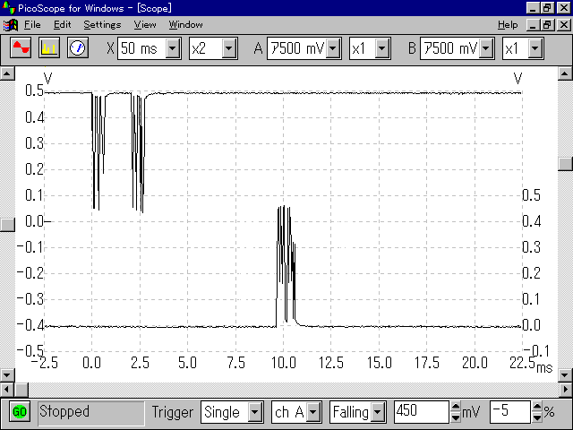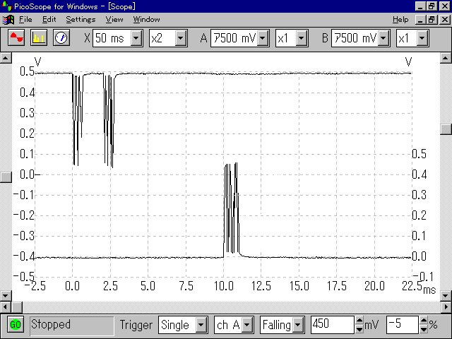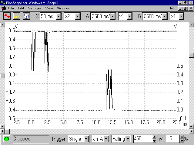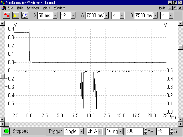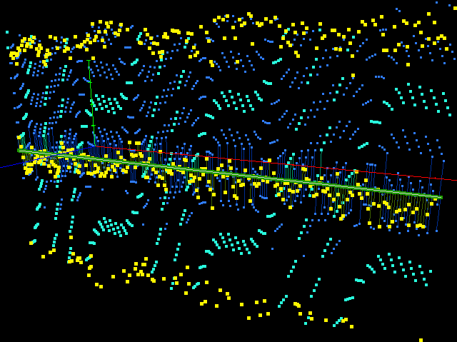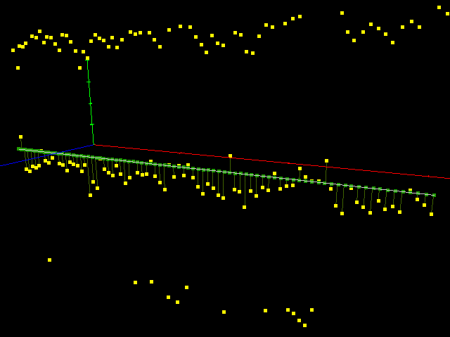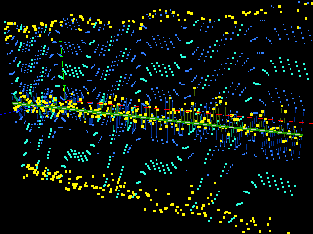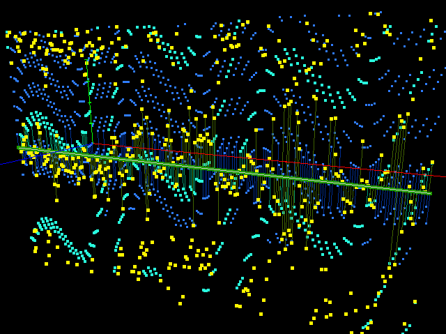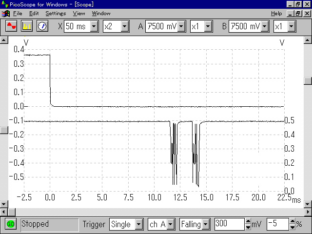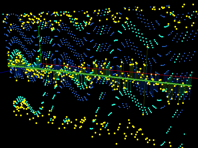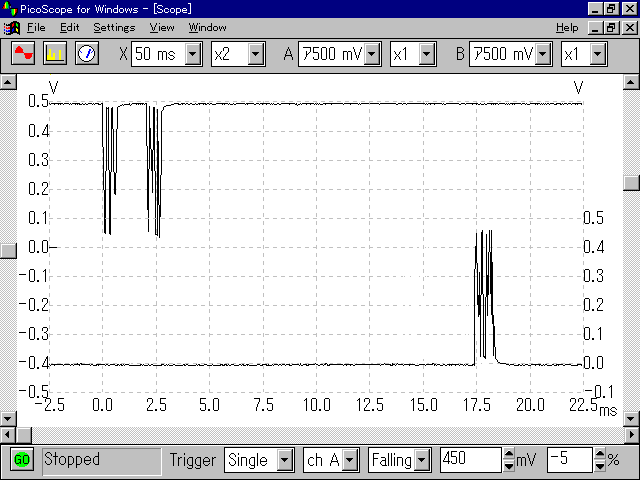 下図はこの全体図のいちばん最初の部分を、データ軸方向(X軸方向)に拡大表示した例である。 実験の冒頭はいきなり映像も音楽も始まるので、、最初のあたりは映像ビートとタッピングデータとがばらばらに離れている。