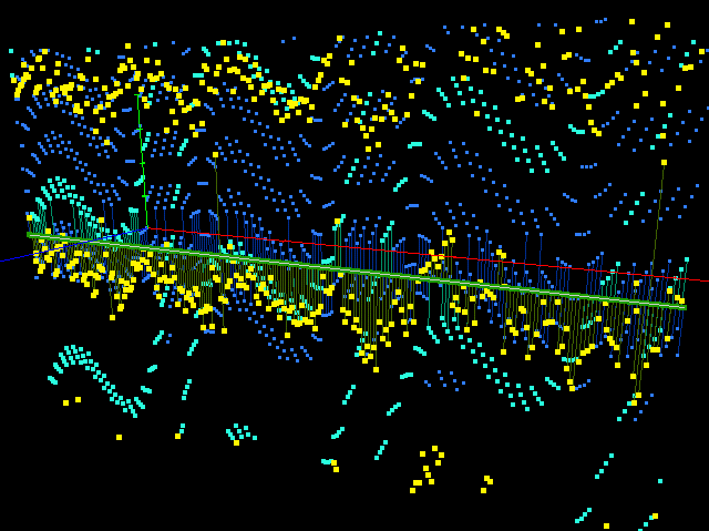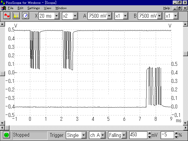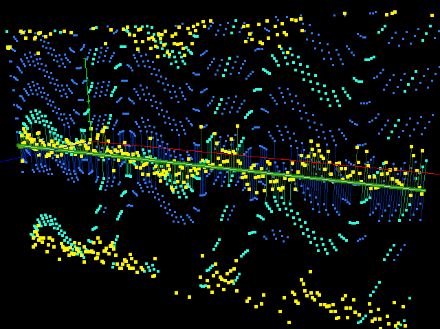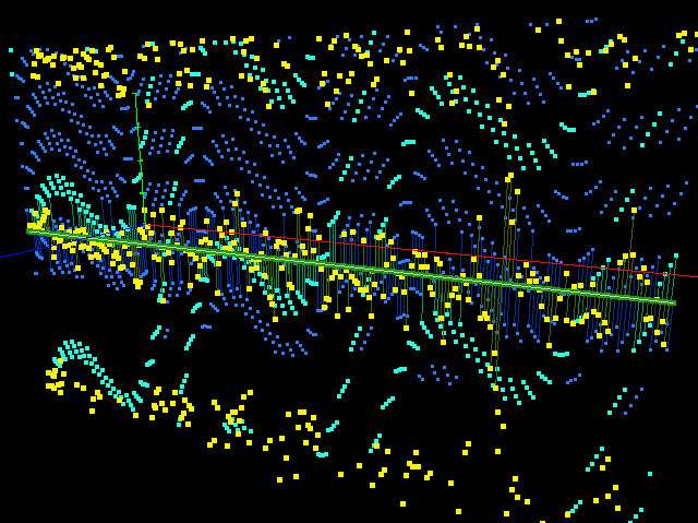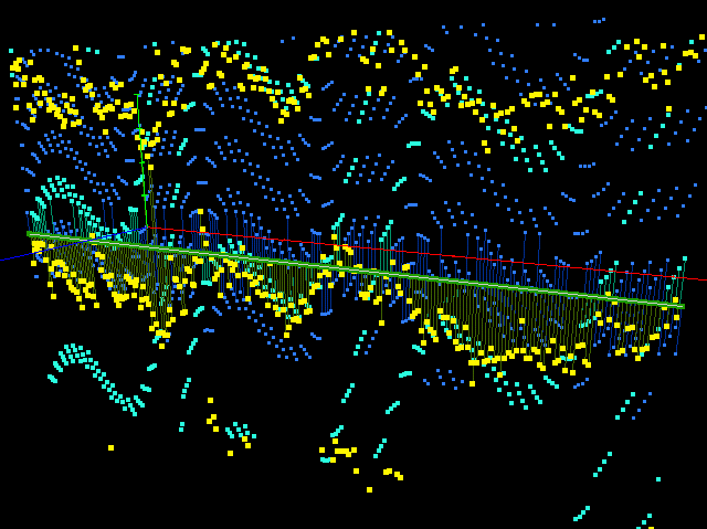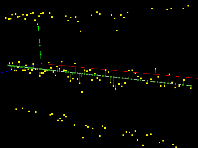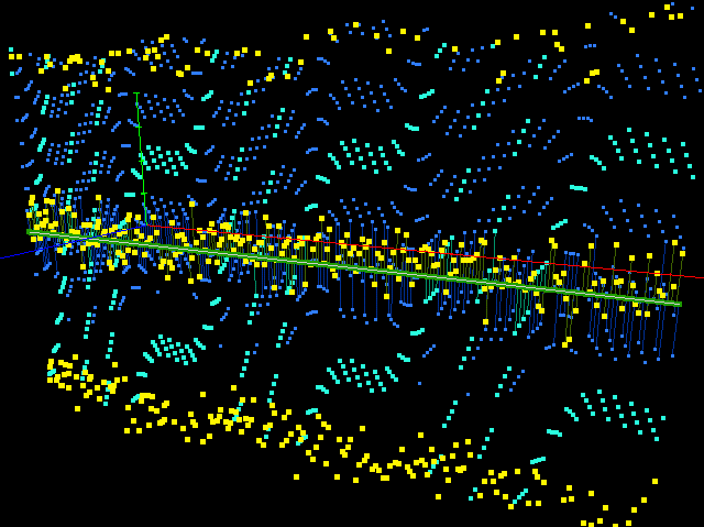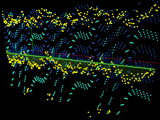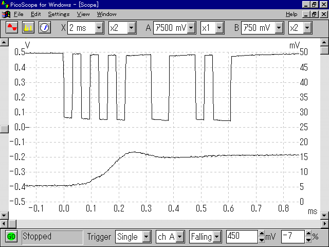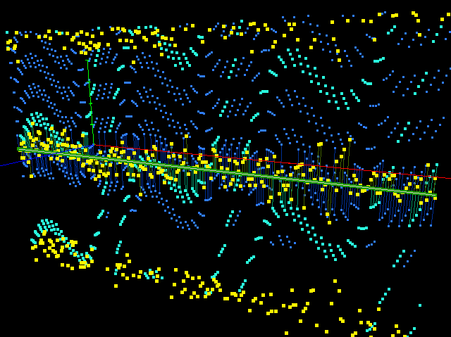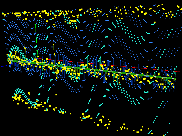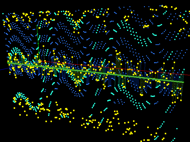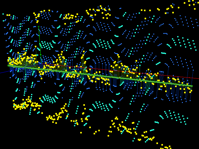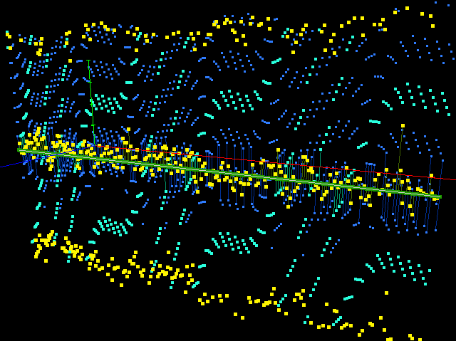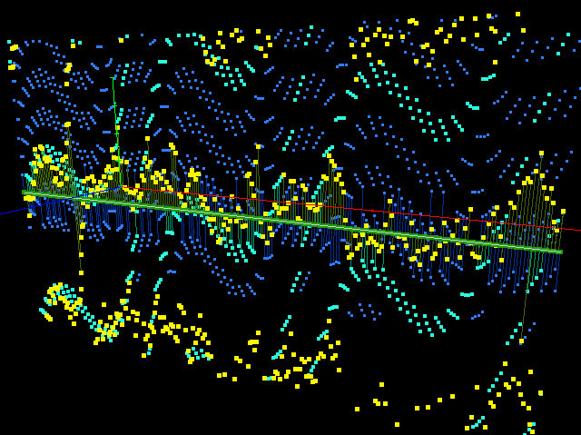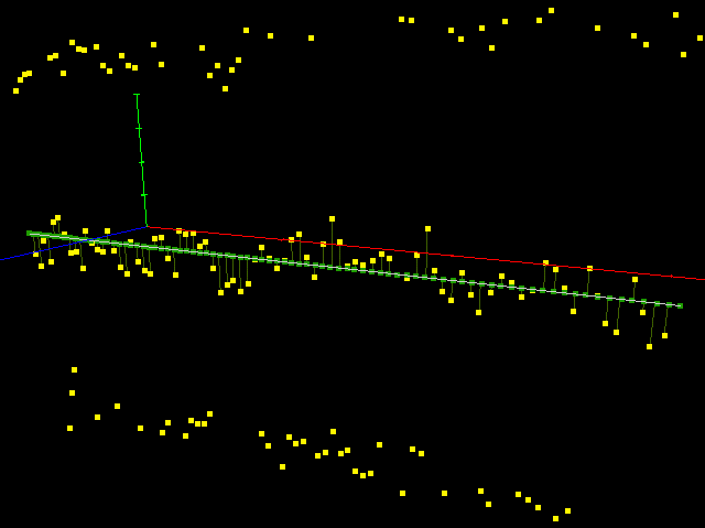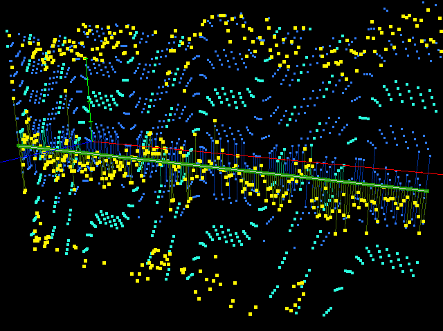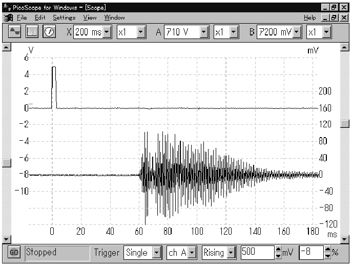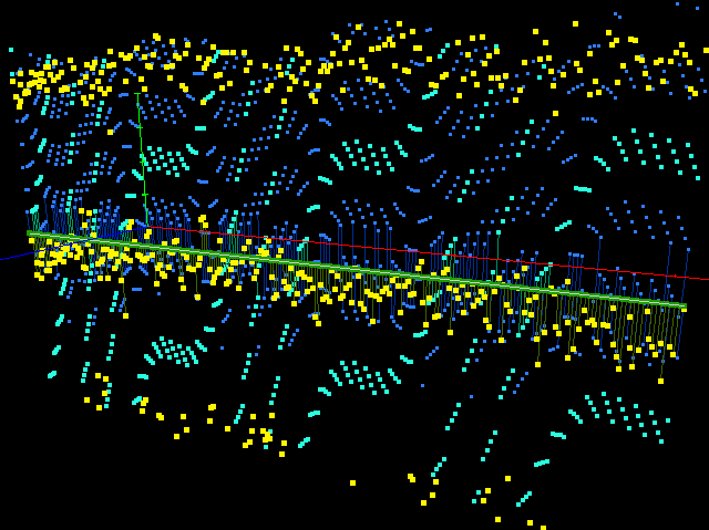 下図はこの全体図のいちばん最初の部分を、データ軸方向(X軸方向)に拡大表示した例である。 実験の冒頭はいきなり映像も音楽も始まるので、、最初のあたりは映像ビートとタッピングデータとがばらばらに離れている。