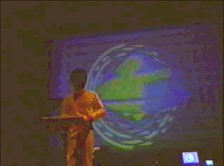 At first, I will introduce the movies of my works of interactive multimedia arts