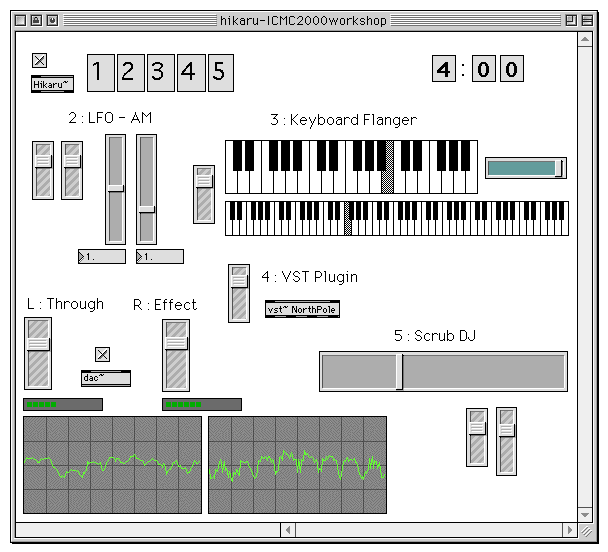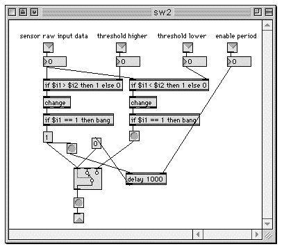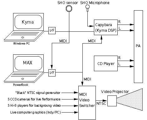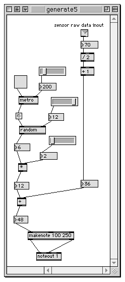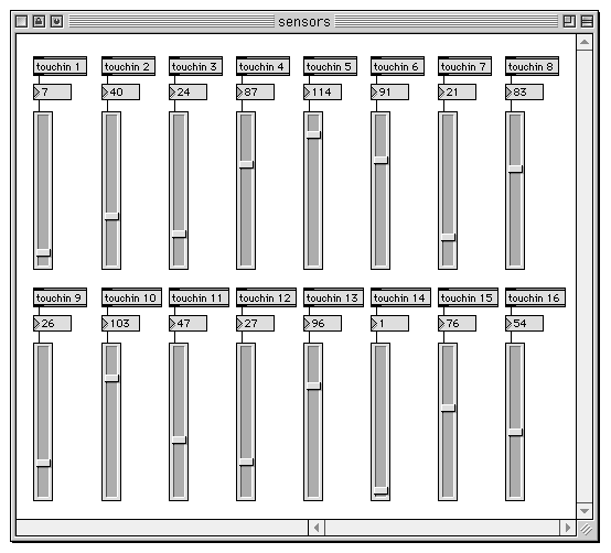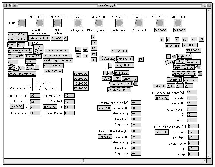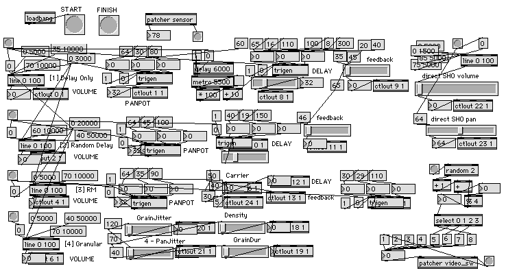 I used 2 PowerBook in this worak, running this program in SuperCollider