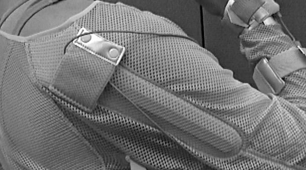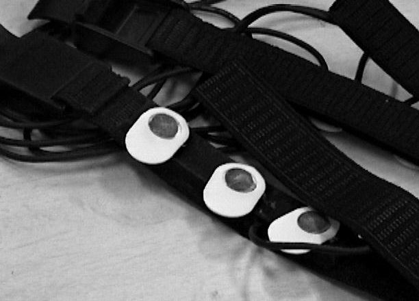 はこの筋電センサバンドのアップである。ここに3つ付いているのが