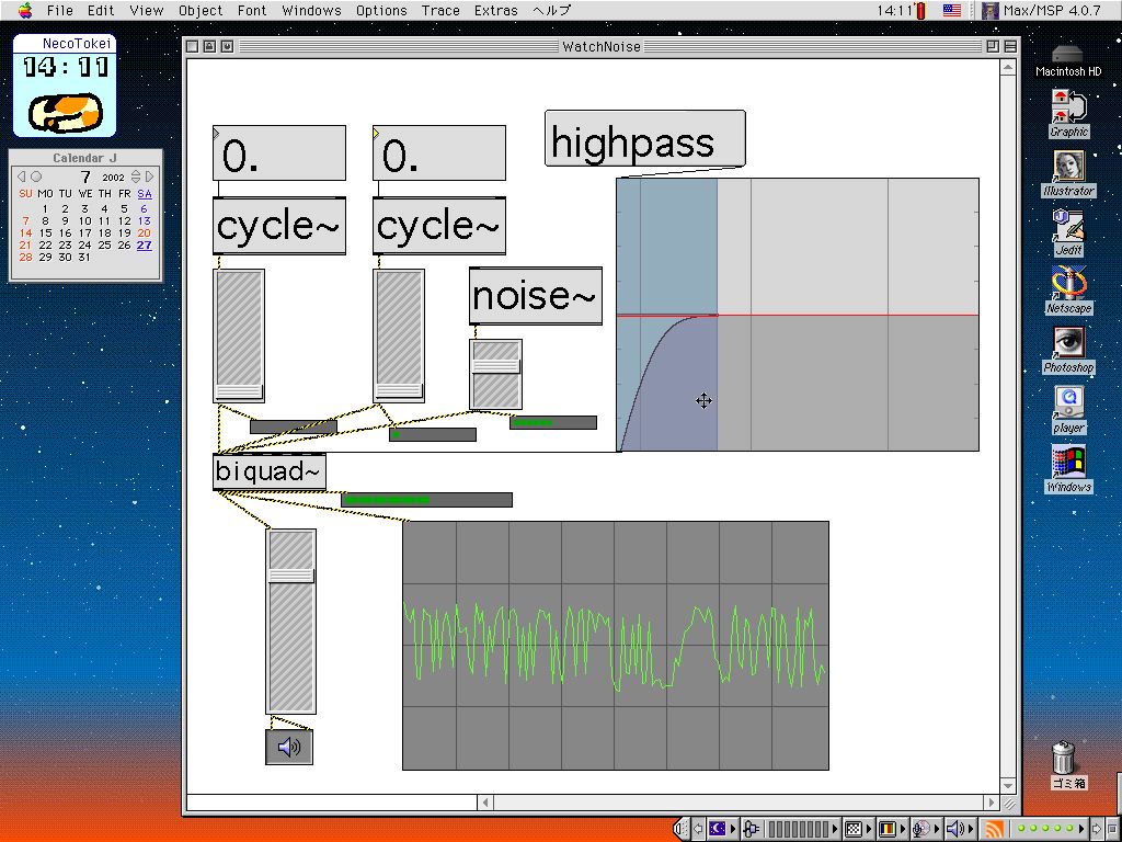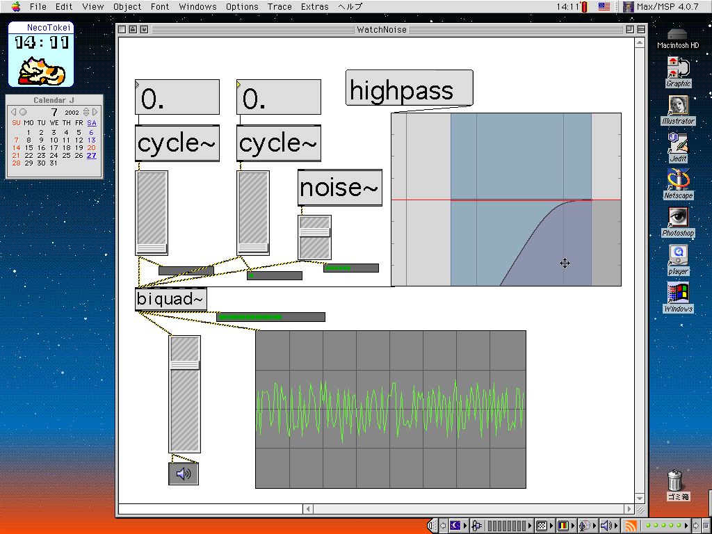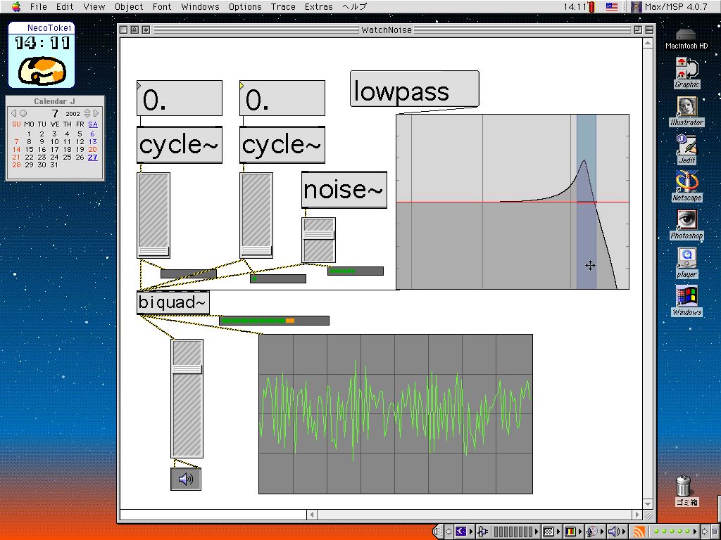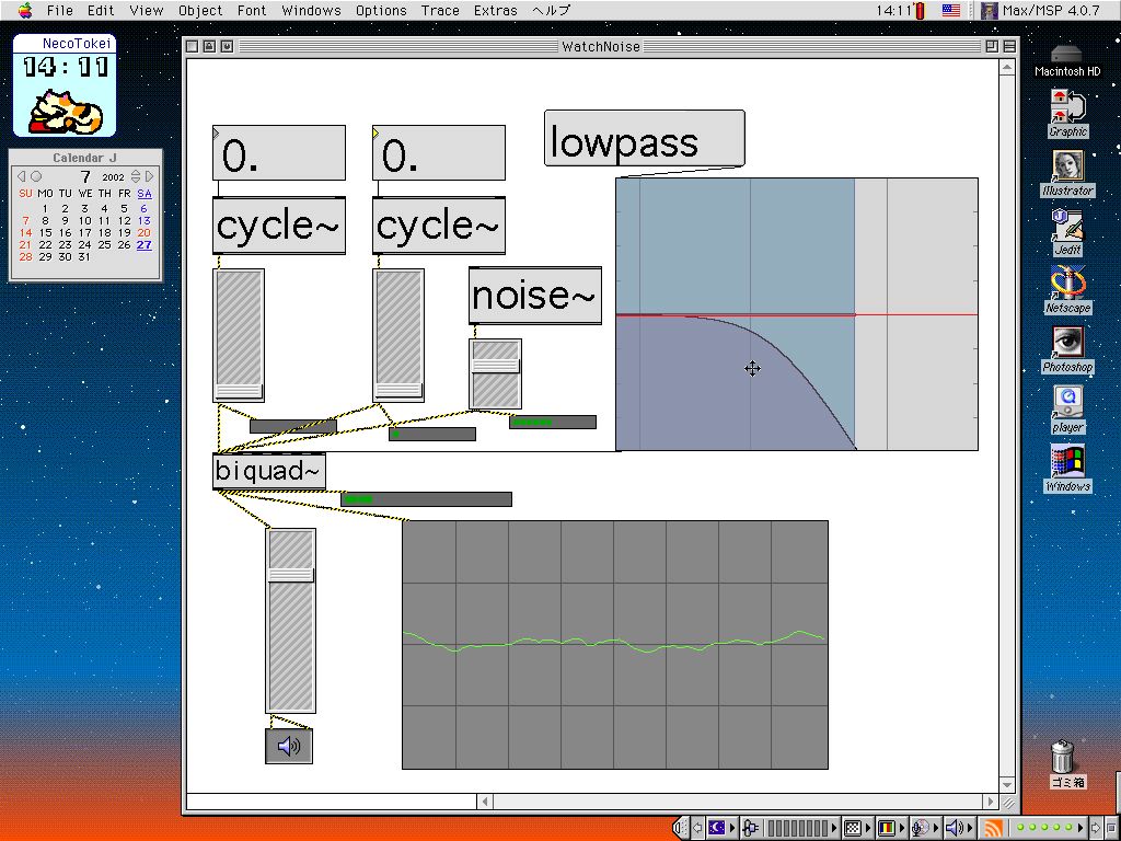 2種類のサイン波と各種フィルタ
