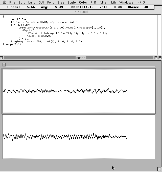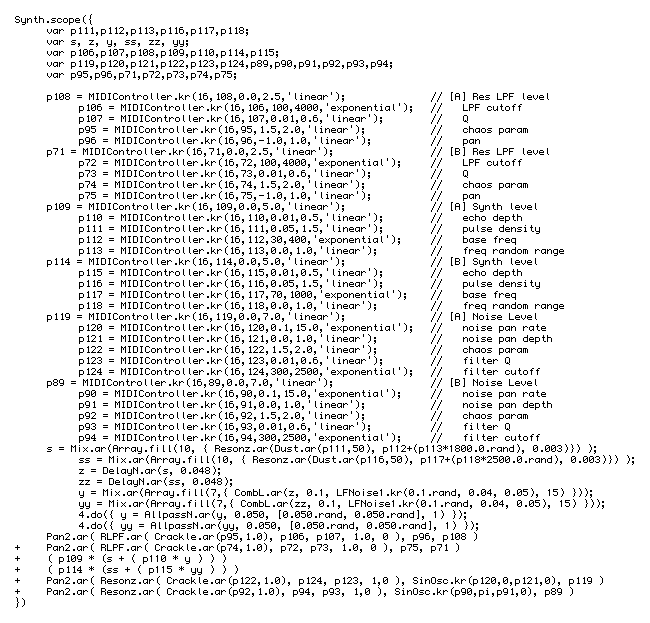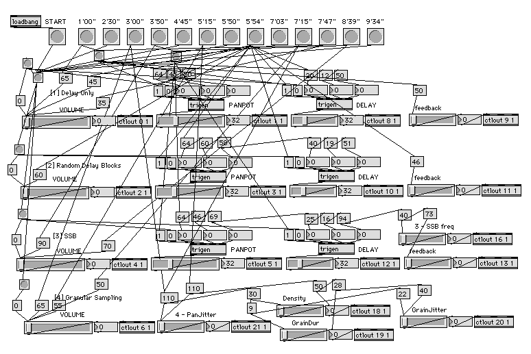 「MIDIでGranular Sampling制御したりサウンドファイルを20個ほど多重再生」などという