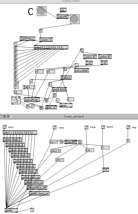 Max4/MSP2による作品としました。これは東京都写真美術館で毎日6時間、連続2週間