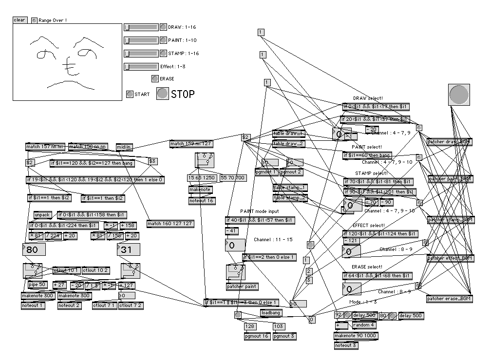 しました。当時のMaxのグラフィクス機能は非力なため、MIDIを切り口として外界とやりとり