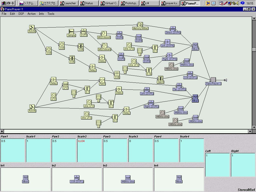ため、MS-DOS上でC言語によりアルゴリズミックな生成系をプログラミングして、MIDIセンサ