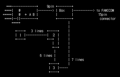 ファミコンの15ピンコネクタにつながるケーブルはまず、タバコ箱大のBoxに