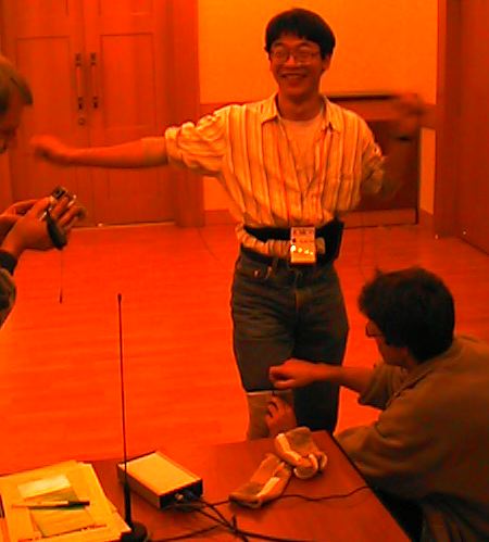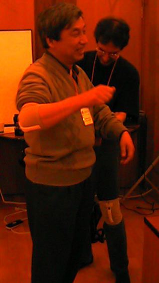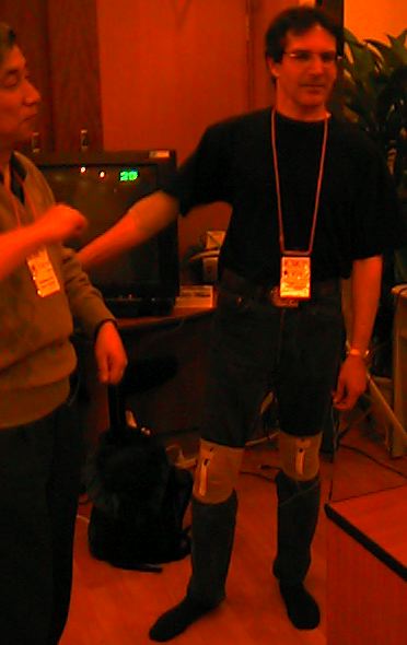 これが開発者のWaine Siegel。このように両膝にもセンサを
