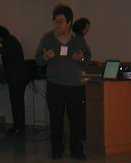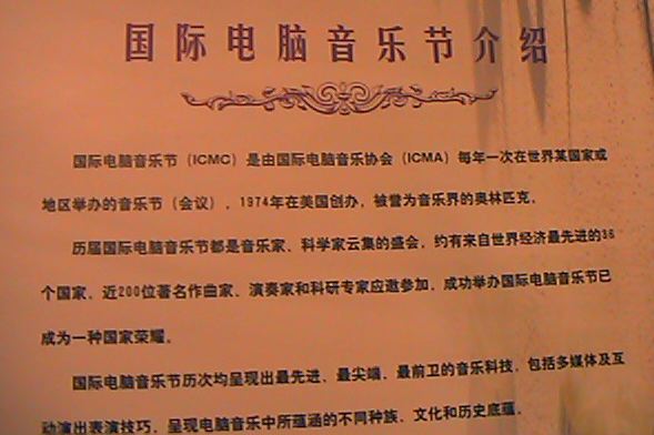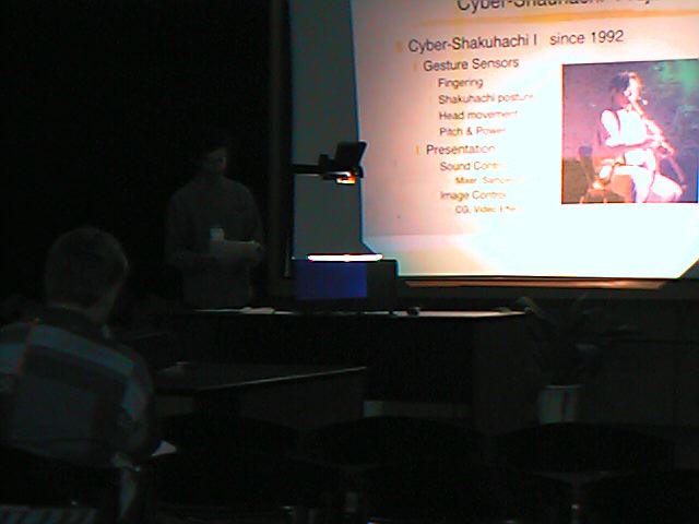 ダンスのコンサートのパンフレットにあった「ICMCの説明」です。 昨日到着して、今日の発表から合流した、筑波大の五十嵐先生 です。暗くてごめんなさい。(^_^;)