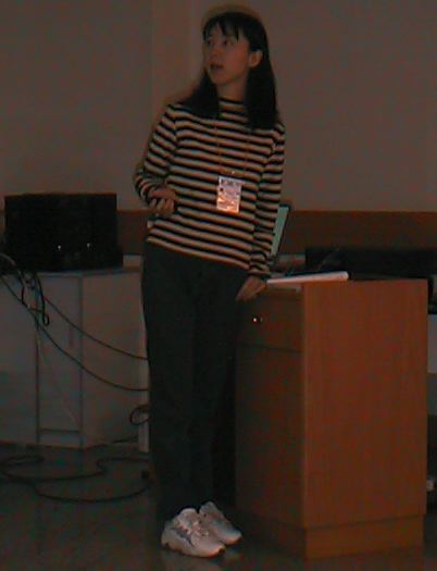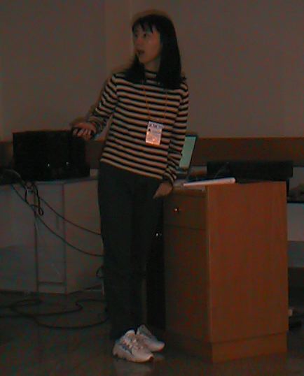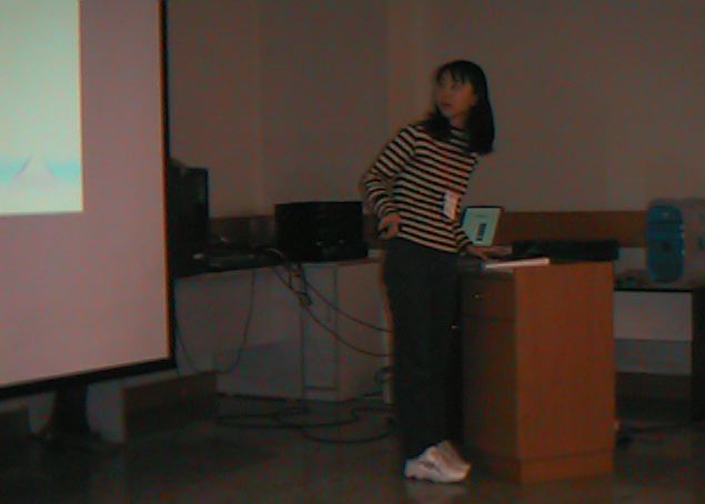 ペーパーで発表する片寄さん。暗くてごめんなさい。