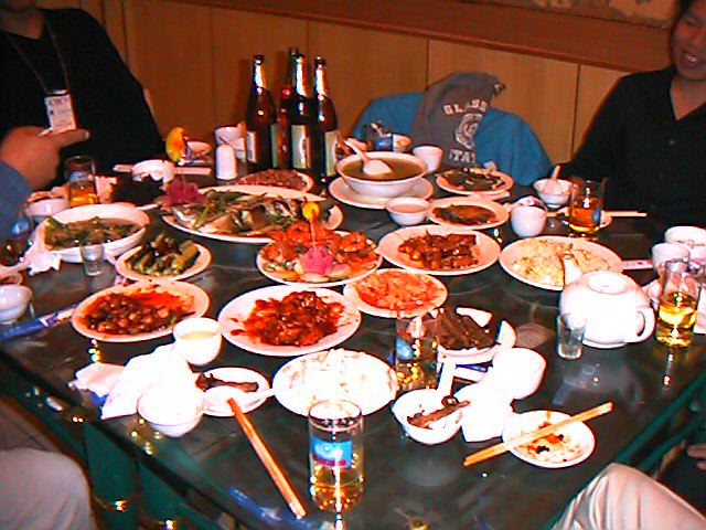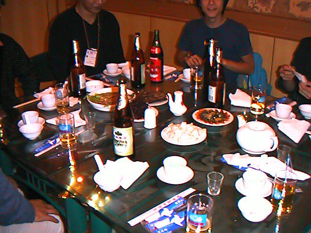 IRCAMのテーブルに出ていた、多チャンネルA/DのMIDI出力 センサです。どっかに同じようなものがあったような。(^_^;) 昼食会場の食堂からコンサートホールに行く途中の、たんなる キャンパス内の風景です。公園ではないですよ。 同じく。実は、この石碑の後ろで、アベックが抱き合って座って イチャついていたのですが、そういうアングルに移動して 隠しておきました。(^_^;) この左手に、ホールがあります。広々とした芝生なのですが、 サイズは伝わりにくいですね。(^_^;) これが、さきほど夕食したレストランです。橋本研の斎さんがいたので、 地元の人が行く、安いところに行けました。(^_^) さて、ここから覚悟して下さい(^_^;)。料理の写真が並びます。 さて、さりげなく「北京ダック」が加わりました。どこでしょう。(^_^;)