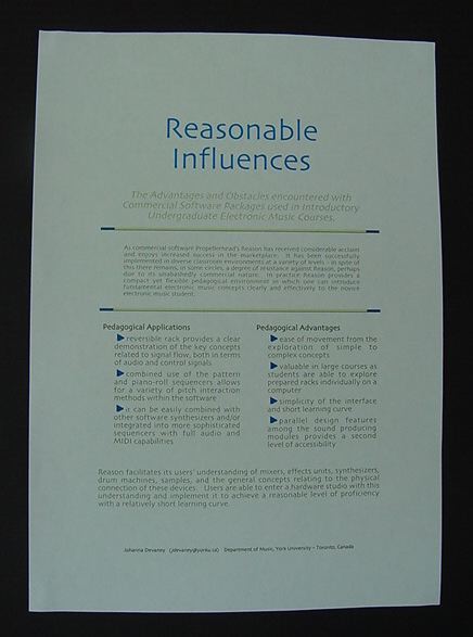 - Reasonable Influences: The Advantages and Obstacles encountered with Commercial Software Packages used in Introductory Undergraduate Electronic Music Courses ★