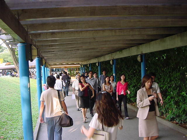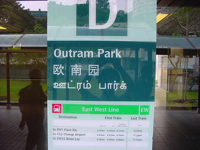そして、1時間ほどして、ぼちぼちMRTでNUSに向かわないと、ということでMRTのチャイナタウン駅まで 行ったのですが、なんとここで、同じホームの反対側、つまり逆方向に乗ってしまいました。 気付いたのは次の次の駅で(^_^;)、そこから7分間隔で来る逆方向に乗り換えても、さらに別路線に 乗り換えないとクレメンティに向かえない、つまり午後のコンサートには大幅に遅刻する、と 判明しました。 そこで1分ほど悩んだ結果、午後のコンサートをパスして(^_^;)、さらにプチ観光をすることにしました。