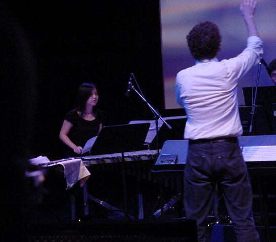 Christopher Raphael (Univ. of Massachusetts, USA)We describe a computer system that synthesizes a responsive and sensitive orchestral accompaniment to a live musician in a piece of non-improvised music. The system of composed of three components ``Listen,'' ``Anticipate'' and ``Synthesize.'' Listen analyzes the soloist's acoustic signal and estimates note onset times using a hidden Markov model. Synthesize plays a prerecorded audio file back at variable rate using a phase vocoder. Anticipate creates a Bayesian network that mediates between Listen and Synthesize. The system has a learning phase, analogous to a series of rehearsals, in which model parameters for the network are estimated from training data. In performance, the system synthesizes the musical score, the training data, and the on-line analysis of the soloist's acoustic signal using a principled decision-making engine, based on the Bayesian network. A live demonstration will be given using the aria Mi Chiamano Mimi}from Puccini's opera La Boheme, rendered with a full orchestral accompaniment.