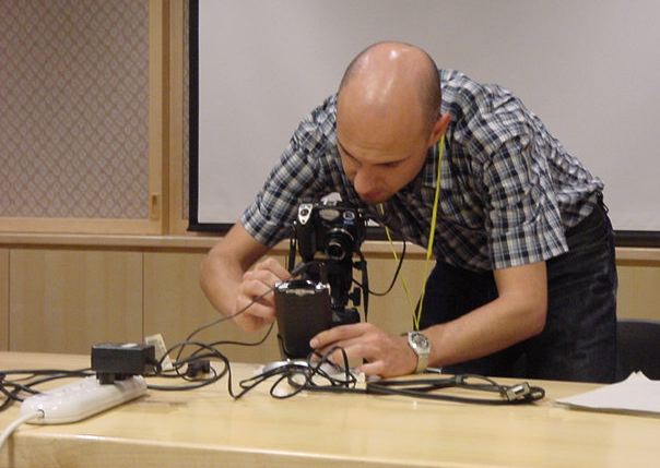 そしてイブニングコンサートとなりました。この日も学生は終日観光で、コンサートから合流しました。 冒頭に前夜の映像上映に失敗したDVDを別のシステムでなんとか再生し、あとコンサートはライブ作品とテープ作品でした。 コンサート開始から遅れて20:30頃スタートし、終演は22:30頃でした。 ★ ★ ★ ★ ★ ★ ★ ★ ★ ★