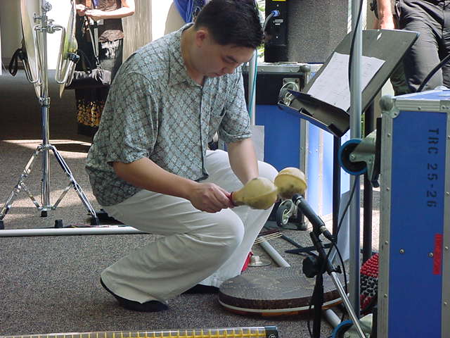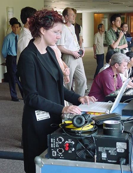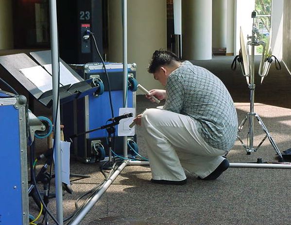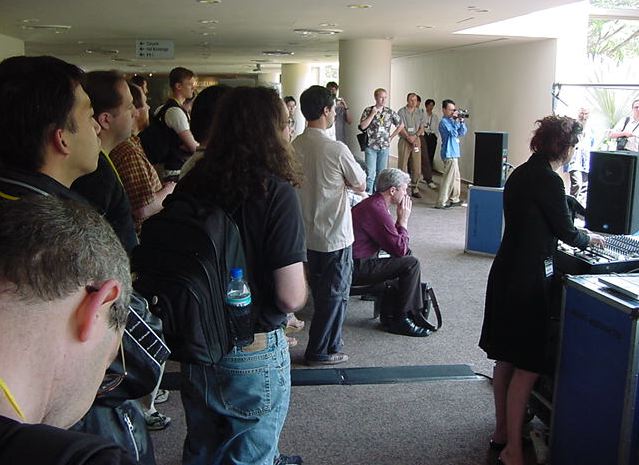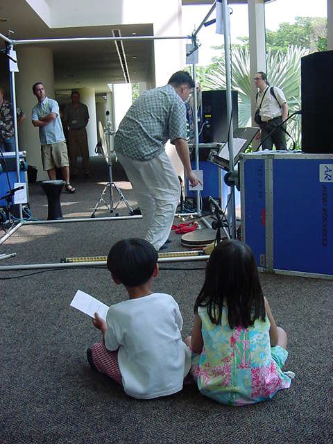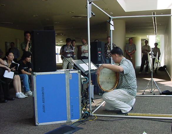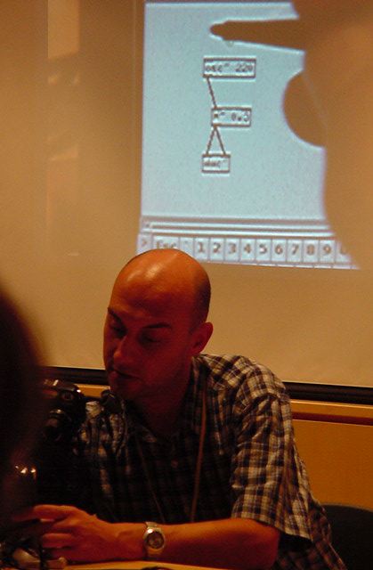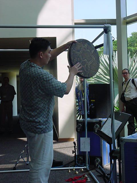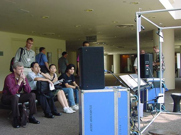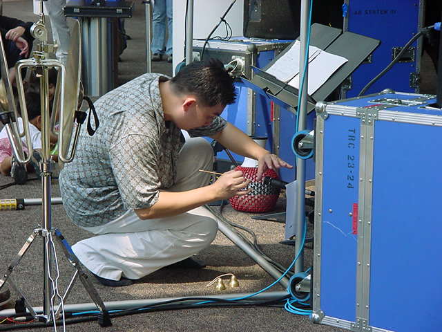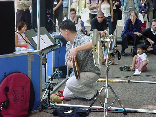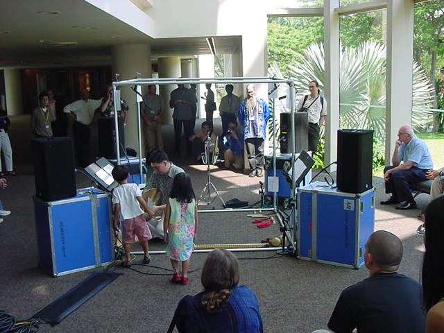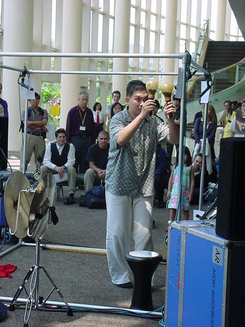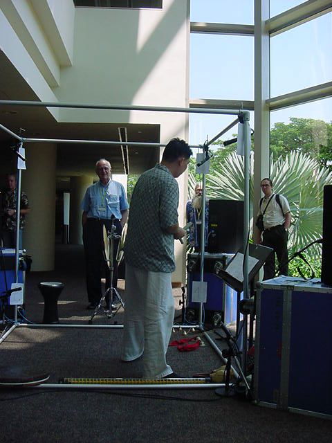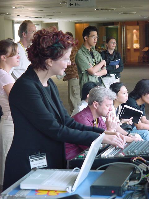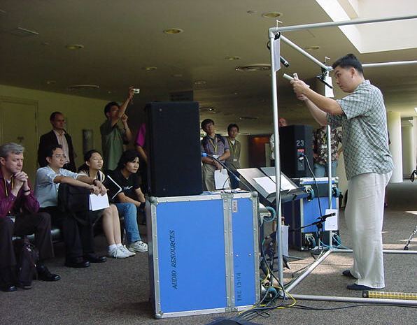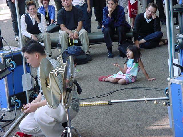 そこで、学生の部屋に電話するとホテルに帰ってきていたので、ホテルから歩いて数分のフードコートでの夕食に 出かけました。 部屋に戻ってから仕事メイルを整理していると、またまた就寝は深夜になりました。 ★ ★ ★ ★ ★ ★ ★ ★ ★ ★ ★ ★4th October Saturday Evening - Approximate playing time : 82 min Douglas Geers Enkidu 11 Apostolos Loufopoulos Night Pulses 11 Paul Wilson Spiritus 13 Russell Pinkston Gerrymander 8 Ivica Bukvic Slipstreamscapes Lullaby 9 Rikhardur Fridriksson Lidan II 12 Diane Thome Estuaries of Enchantment 11 Steve Everett Ladrang Kampung 7ちなみにICMC2003の事務局に取材したところ、当日参加者(約10名)を加えても、全体の参加者は 120名ほどだったとのことで、SARSの影響、そして欧州組が敬遠するアジア開催のICMCということで、 かなり小規模なものになってしまったようです。