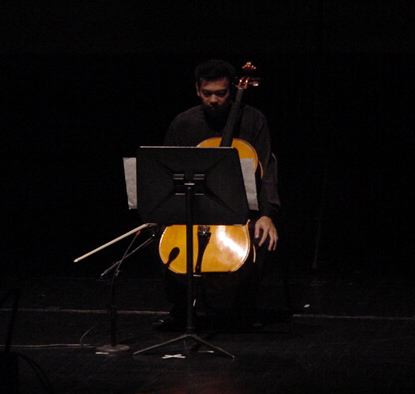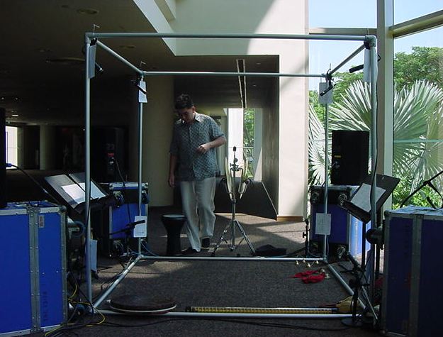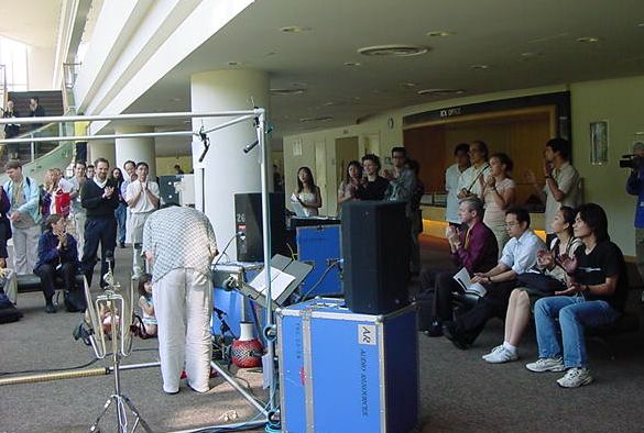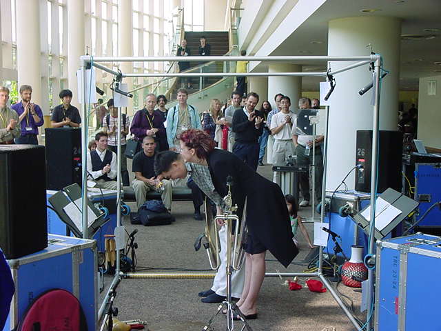 アフタヌーンコンサートの途中の休憩時間には、ロビーでパフォーマンスがありました。 立方体の8つの頂点の部分のマイクで拾ったサウンドをMax/MSPで加工して多種のエコーをかける、という 作品で、パーカッション奏者がいろいろとやっていました。 ★ ★ ★ ★ ★ ★ ★ ★ ★ ★ ★ ★ ★ ★ ★ ★ ★ ★ ★ ★ ★ ★ ★ ★ ★ ★ ★ ★ ★ ★ ★ ★ ★ ★ ★ ★ ★ ★ ★ ★ ★ ★ ★ ★ ★ ★ ★ ★ ★ ★ ★ ★ ★ ★ ★ ★ ★ ★ ★ ★ ★ ★ ★ ★ ★ ★ ★ ★ ★ ★ ★ ★ ★ ★ ★ ★ ★ ★ ★ ★ ★ ★ ★ ★ ★ ★ ★ ★ ★ ★ ★ ★ ★ ★ ★ ★ ★ ★ ★3rd October Friday Afternoon - Approximate playing time : 77min Joran Rudi Babel Study 9 Colby Leider Veritas Ex Machina 12 Christopher Morgan Brittle 9 Cort Lippe Music for Cello and Computer 15 Bob Sturm Pacific Pulse 7 Joao Pedro Oliveira Mahakala Sadhana 10 Sun-Young Pahg Relief Oktett 14コンサートの後半は、LippeのチェロとMSPのライブDSP作品からでした。 この作品が今回はベストで気に入りました。 ★ ★ ★ ★