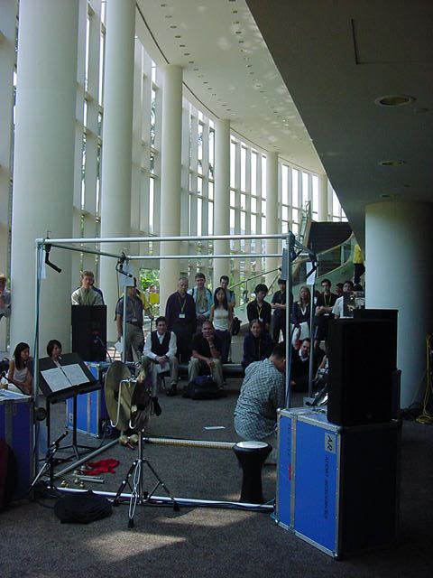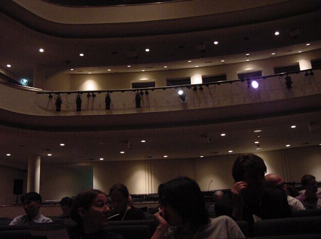 この日の午後のセッションは、残念なミスにより参加できませんでした。 手にしたプログラムに載っているタイムテーブルを頼りに、 (1)Proceedingsの印刷が間に合わず翌日まで入手できない、(2)美学や教育などちょっと 参加困難なセッションだけである、という理由で、晩のコンサートとともにこの日は16時頃で 早めに退散することにしました。1st October Wednesday Afternoon - Approximate playing time : 79 min Ian Whalley Kasumi 8 Andrew May + Elizabeth McNutt Retake 8 Hideko Kawamo After the Summer Rain 12 Gerald Eckert Klangraume II 6 Mark Applebaum Pre-Composition 12 Jon Christopher Nelson L'horloge Imaginaire 10 Konstantinos Karathanasis Allegoriae Sonantes 8 Shigenobu Nakamura Noemata 7 Per-Anders Nilsson + Jim Berggren Memento Mori 8