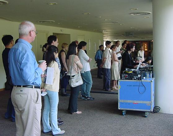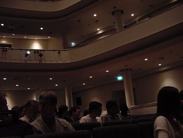ところが、翌日になって判明したのですが、配付された「プログラム」には、この日の午後にあった Visualizationのセッションが書かれていなかったので、その存在に気付かずに行けませんでした。 論文集さえあればチェックできたのですが、配付されたプログラムが「不良品で信頼できない」と 気付いたのは文字通り「後の祭り」でした。 ということで参加できなかったこの日の午後のセッションは以下でした。 記録写真を取れなかった、お茶女の渡辺さん、ごめんなさい(^_^;)。Session : WedPmOR1 Aesthetics, Acoustics and Psychoacoustics I