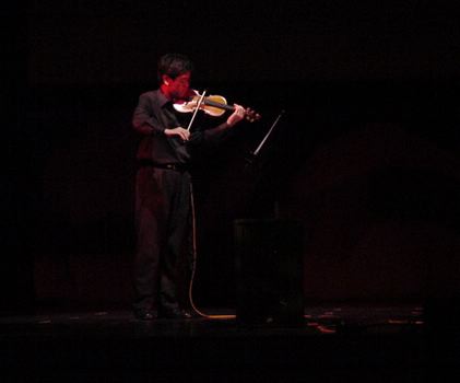 Brian Belet (Center for Research in Electro-Acoustic Music, USA)Meaningful real-time interaction between human performers and computer processing is an important aesthetic issue for many composers. With the advent of computer systems that are actually fast enough to permit real-time algorithmic sound realizations based on the analysis of live performance data the issue now facing composers is how to utilize these tools in a meaningful and artistic way. Lyra, composed in 2002 for violin and Kyma, is an environment in which the acoustically generated sounds and the computer generated and processed sounds are mutually dependent upon each other for a unified ensemble performance. All of the computer music layers are generated in real time using the violin music as direct audio and as analyzed input data for processing, resynthesis, and other parameter control. The violin music is also affected by the computer music output through performance instructions that invite response and improvisation. The violinist is also able to control macro time and gestural synchronization with the computer sound layers. The aesthetic goal is to create a performance environment that permits maximum flexibility for the human performer with a great deal of linear independence for both violin and computer, while still maintaining a very high degree of unity and ensemble interaction.