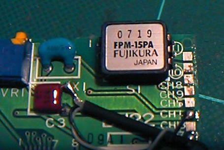 Normally the Sho player must keep sitting calmly, so I cannot use popular interfaces like foot pedals, foot volumes and optical beam sensing the movements of arms. On the other hands, the breath stream of each bamboo tube is very critical, and it is very difficult to detect the value of the bi-directional pressures for each bamboo pipe. I found that normal Sho uses 15 bamboos with reed but 2 bamboos are used only for decoration, not used for sound generation. So I and Tamami replaced one bamboo with the "sensing pipe" which connected a small air pressure sensor module. This sensor detects the bi-directional air pressure value of the "air room" of the bottom of the Sho. Fig.15 shows the pressure sensor and the Sho.