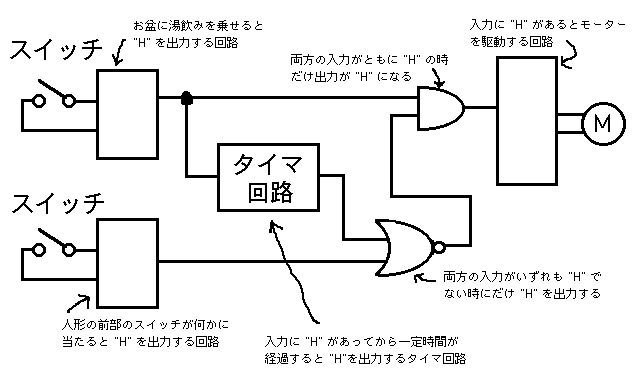 「マイコン」で「からくり人形」を実現するにはこんな感じ