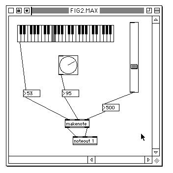 図1のパッチ例では、「notein」という箱(オブジェクトと言う)によって