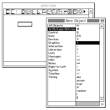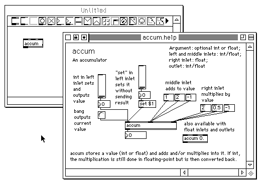 繋がれている。これはグラフィカルなプログラミング環境であり、MAX以前の