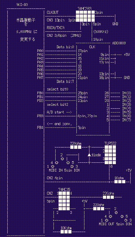 あればMIDI入出力が実現でき、さらにたった1個のA/D変換チップによって、同時に8チャンネルの