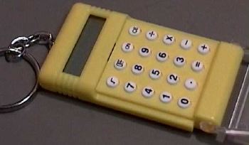 こんな小さなキーホルダー型の電卓がありました。300円。