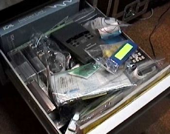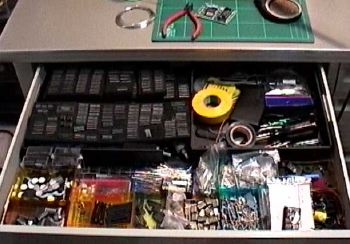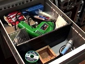 これは右側中段の引き出し。商売道具(^_^;)のハンダごて、